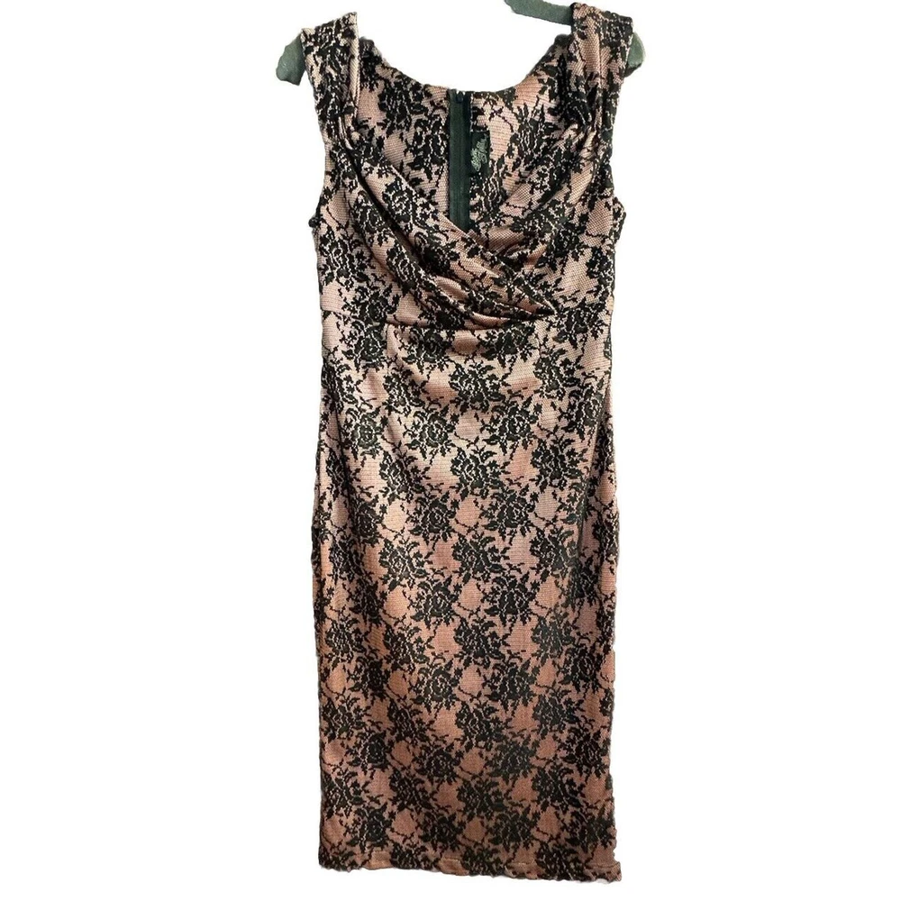 Rock Steady Dress Large Rockabilly Pinup 40s Glam Black Lace Blush Pink. Condition is Pre-owned, but very good. Top to bottom-41.5” Pit to pit-16”