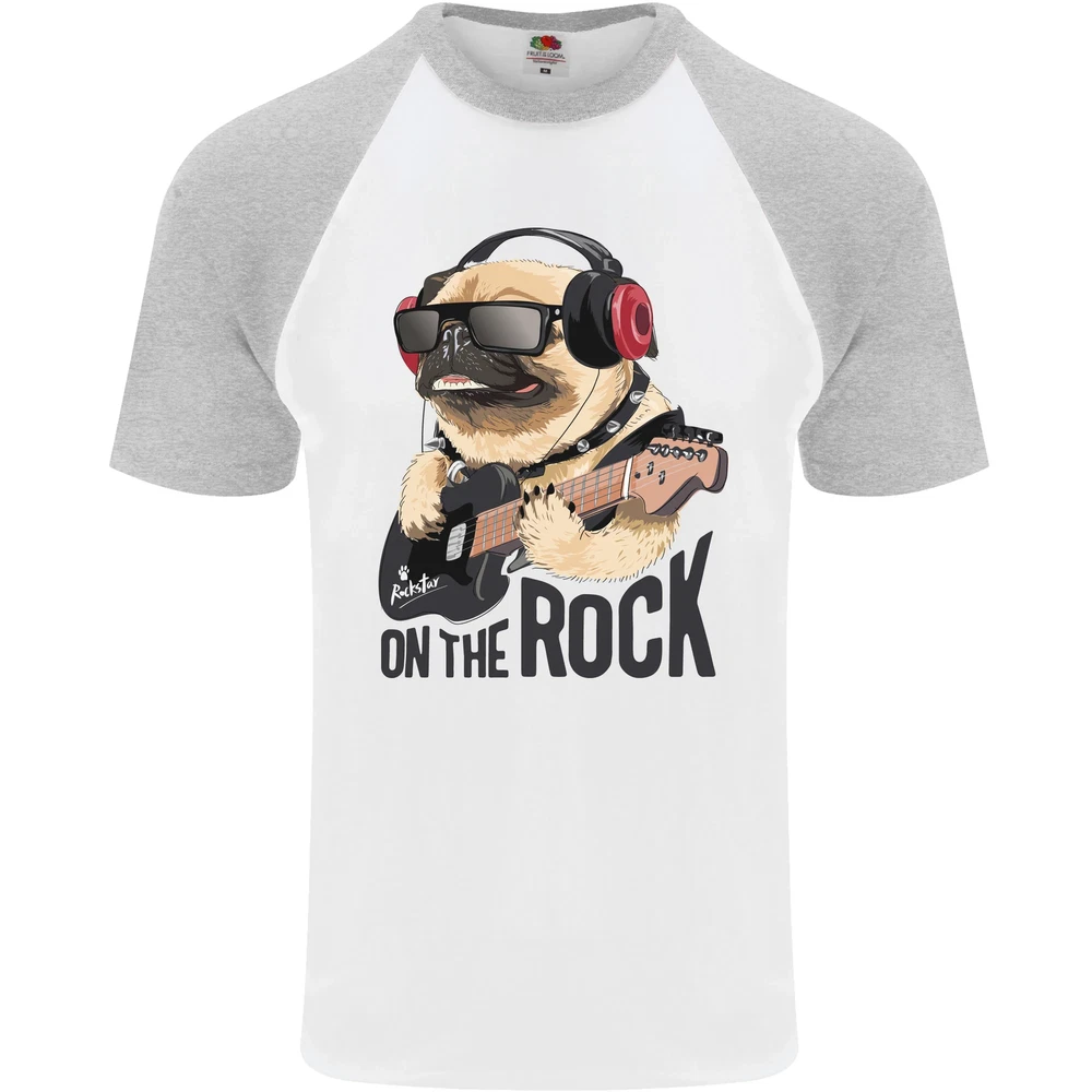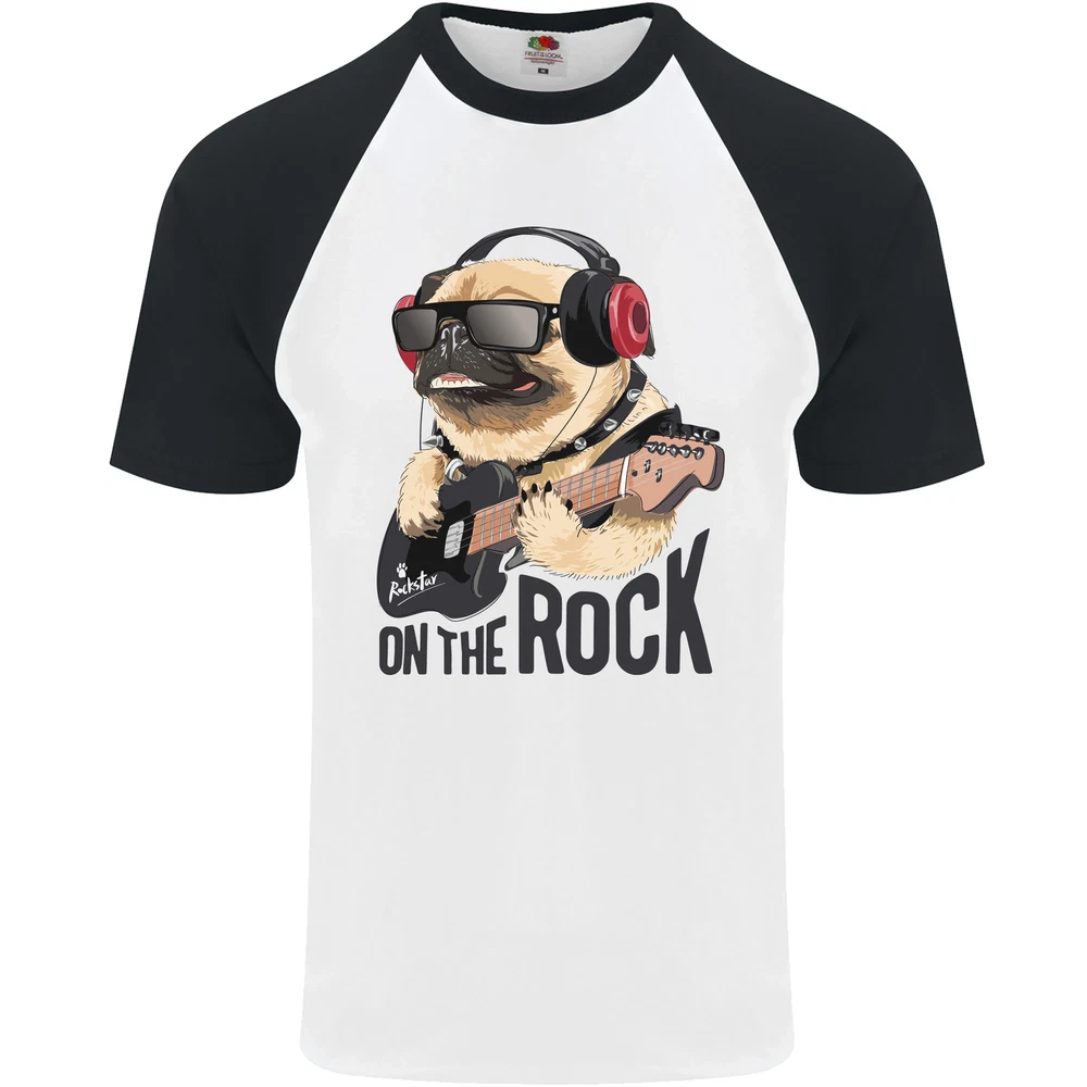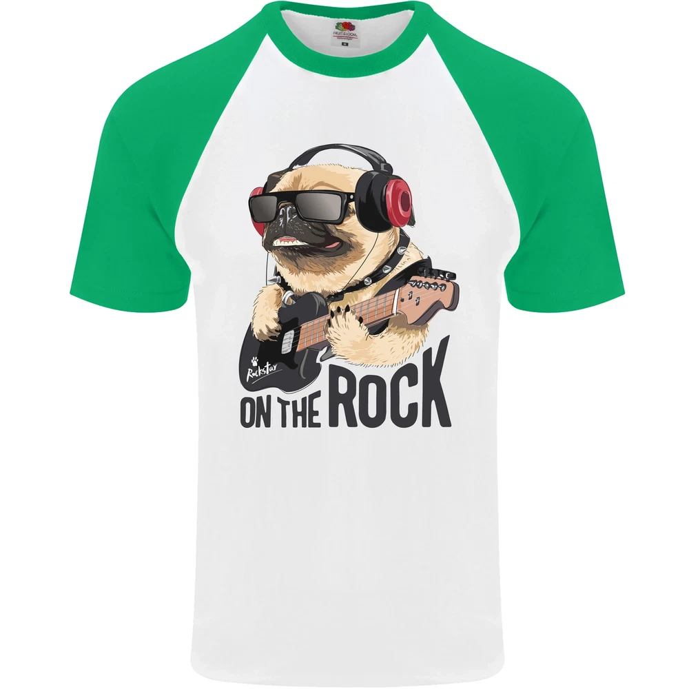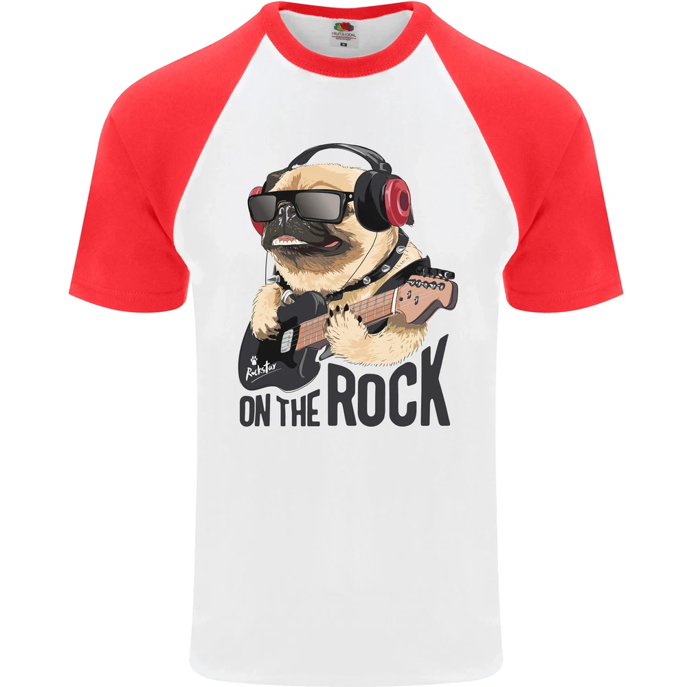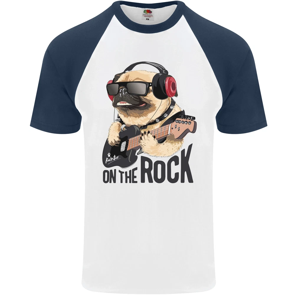 Rock n Roll Pug Funny Guitar Heavy Metal Mens S/S Baseball T-Shirt