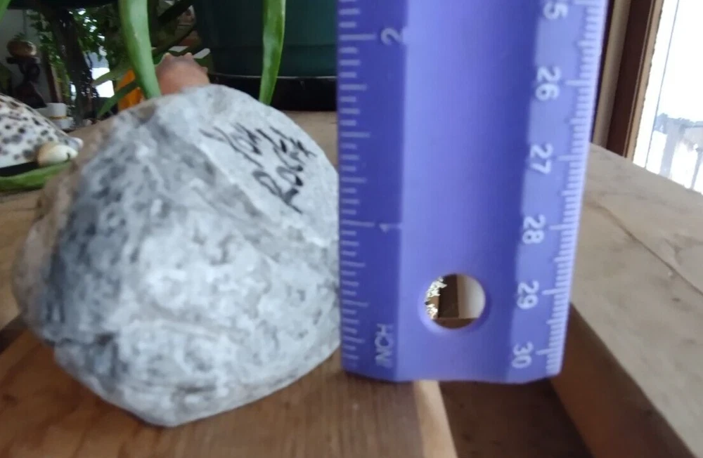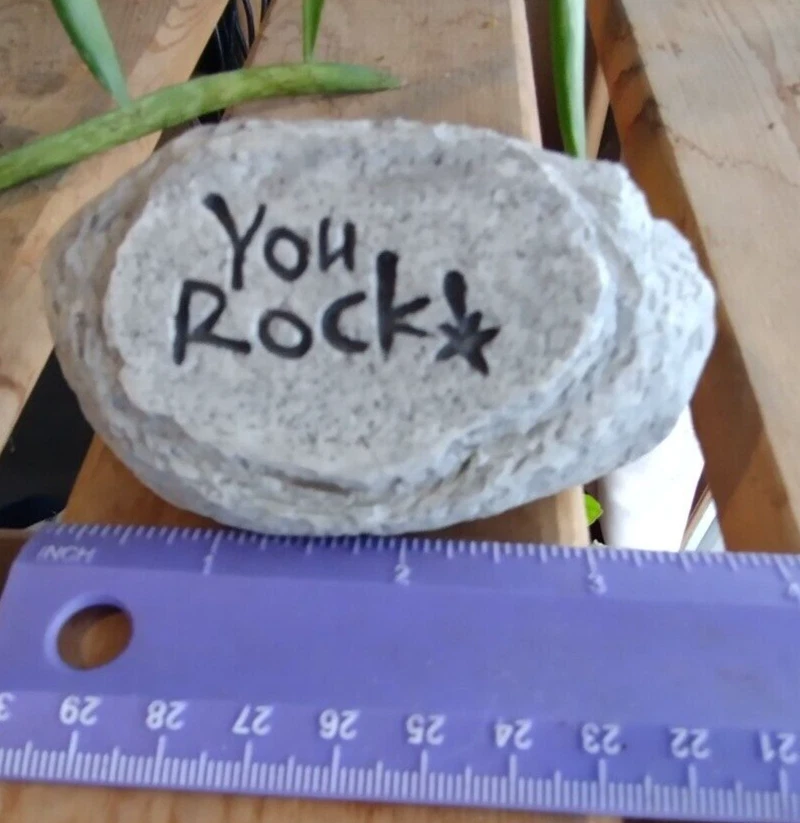 This unique rock paper weight is a great addition to any desk or collection. The gray color with black accents make it a stylish decor display item. Made in the United States, this rock paper weight is perfect for teachers as a gift to show appreciation. Aprox 10 oz
