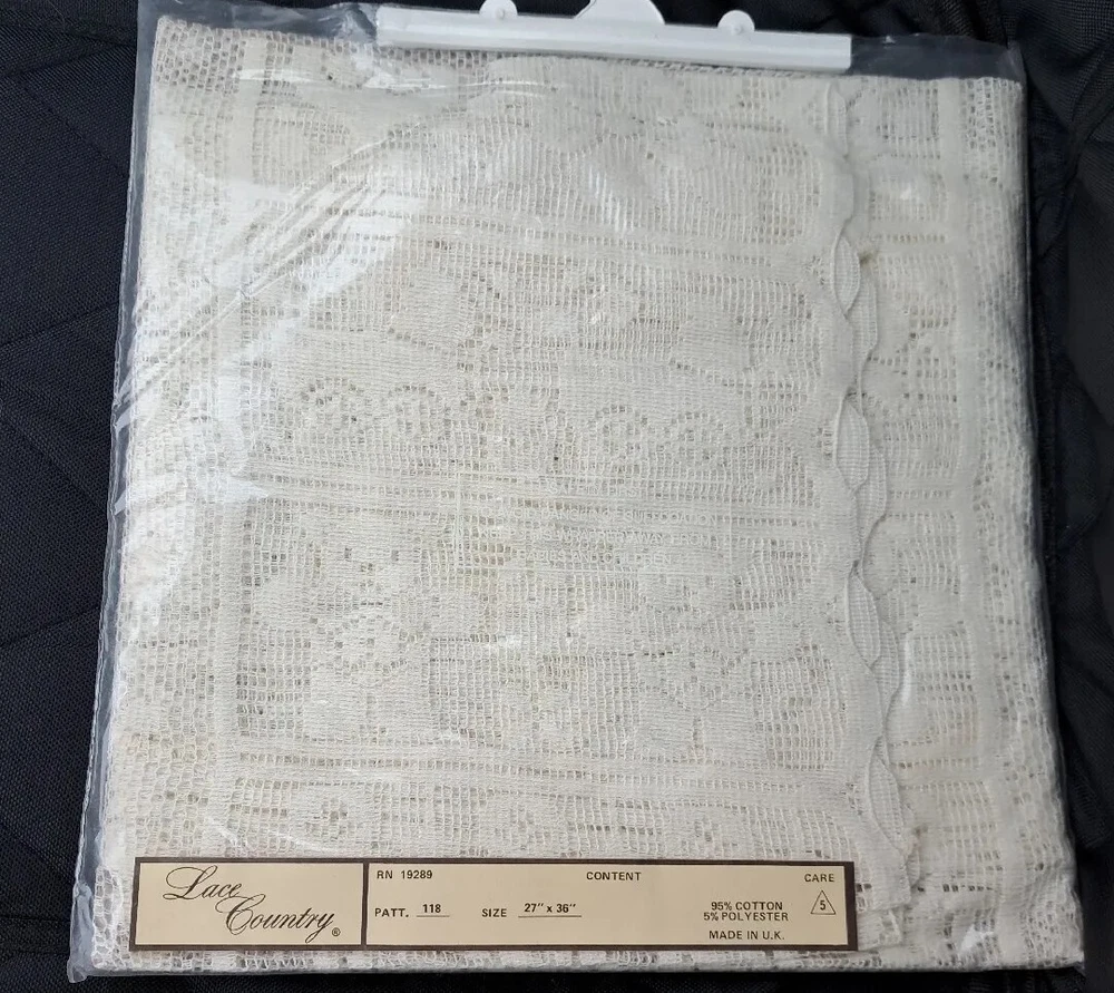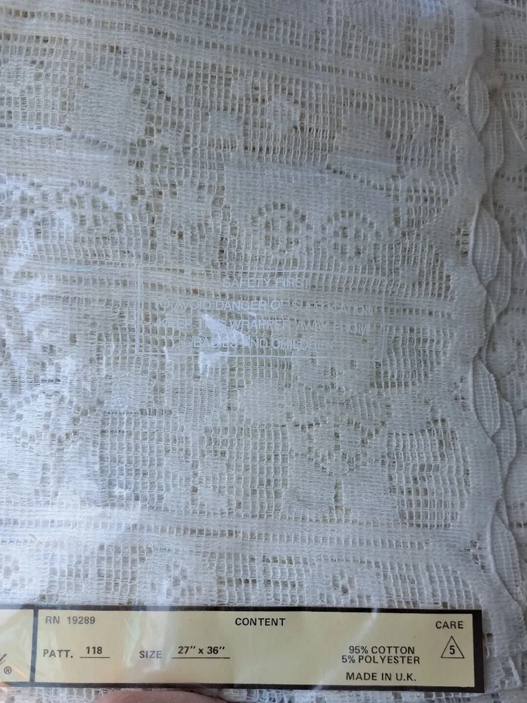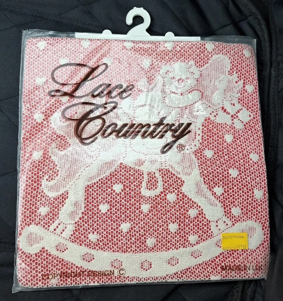 Lace Country Rocking Horse #118 White Lace Fabric Panel Vintage NEW in original packaging 27” x 36” 95% Cotton 5% Polyester Made in UK Please view all photos zooming in on them as they are part of the description for you to judge condition Will ship in a polymailer envelope
