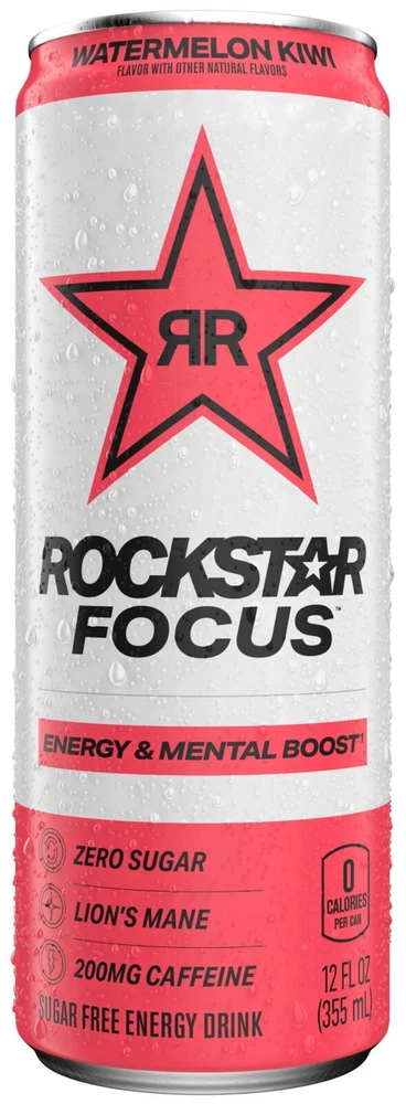 Product details Rockstar Focus Energy Drink is made with lion’s mane for energy & mental boost. Rockstar Focus Energy Drink has zero calories and zero sugar, all flavor, no guilt. With 200mg Caffeine per can, Rockstar Focus Energy Drink is your energy & mental boost companion, so you can be in the moment. Boss your day with sustained energy & focus. Rockstar Energy Drink is designed for those who lead active lifestyles - from Athletes to Rock Stars. Includes (12) 12 oz cans of Rockstar Focus Energy Drink Watermelon Kiwi flavor, energy and mental boost* with Lion’s Maine, Zero Sugar, Zero Calories Lion’s Mane: popular mushroom meets OG Rockstar Energy Zero Sugar and Zero Calories: Rockstar Focus Energy Drink is all flavor, no guilt 200mg Caffeine: Rockstar Focus Energy Drink is your energy & mental boost companion so you can be in the moment Rockstar Focus Energy Drink: Boss your day. Sustained energy & focus. 12oz 12pk Zero Sugar Zero Calories