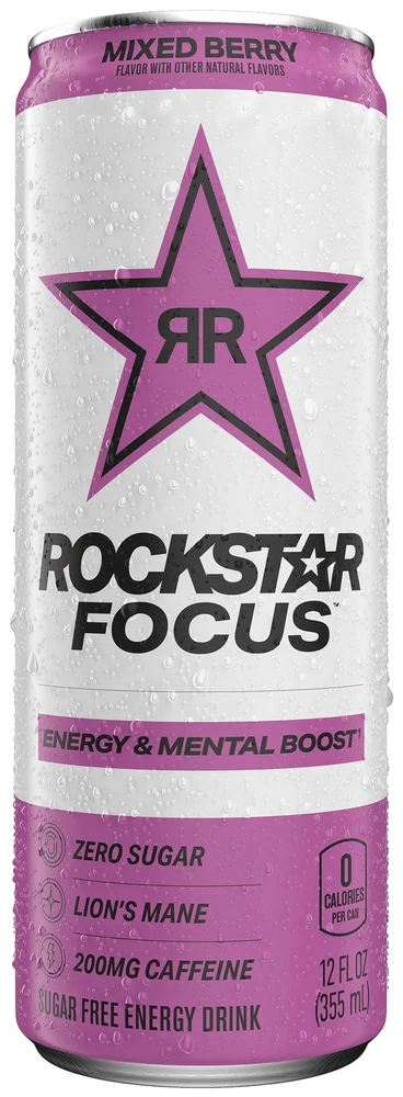 Product details Rockstar Focus Energy Drink is made with lion’s mane for energy & mental boost. Rockstar Focus Energy Drink has zero calories and zero sugar, all flavor, no guilt. With 200mg Caffeine per can, Rockstar Focus Energy Drink is your energy & mental boost companion, so you can be in the moment. Boss your day with sustained energy & focus. Rockstar Energy Drink is designed for those who lead active lifestyles - from Athletes to Rock Stars. Includes (12) 12 oz cans of Rockstar Focus Energy Drink Mixed Berry flavor, energy and mental boost* with Lion’s Maine, Zero Sugar, Zero Calories Lion’s Mane: popular mushroom meets OG Rockstar Energy Zero Sugar and Zero Calories: Rockstar Focus Energy Drink is all flavor, no guilt 200mg Caffeine: Rockstar Focus Energy Drink is your energy & mental boost companion so you can be in the moment Rockstar Focus Energy Drink: Boss your day. Sustained energy & focus. 12oz 12pk Zero Sugar Zero Calories