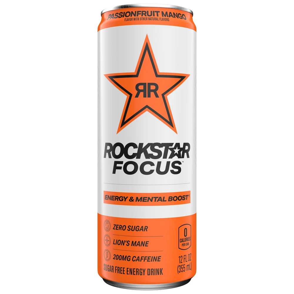 Product details Rockstar Focus Energy Drink is made with lion’s mane for energy & mental boost. Rockstar Focus Energy Drink has zero calories and zero sugar, all flavor, no guilt. With 200mg Caffeine per can, Rockstar Focus Energy Drink is your energy & mental boost companion, so you can be in the moment. Boss your day with sustained energy & focus. Rockstar Energy Drink is designed for those who lead active lifestyles - from Athletes to Rock Stars. Includes (12) 12 oz cans of Rockstar Focus Energy Drink Passionate mongo flavor, energy and mental boost* with Lion’s Maine, Zero Sugar, Zero Calories Lion’s Mane: popular mushroom meets OG Rockstar Energy Zero Sugar and Zero Calories: Rockstar Focus Energy Drink is all flavor, no guilt 200mg Caffeine: Rockstar Focus Energy Drink is your energy & mental boost companion so you can be in the moment Rockstar Focus Energy Drink: Boss your day. Sustained energy & focus. 12oz 12pk Zero Sugar Zero Calories