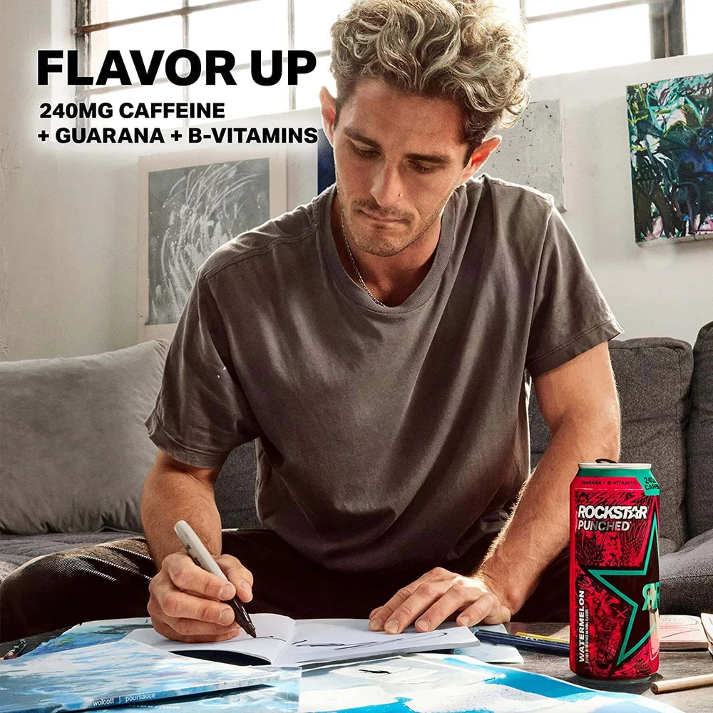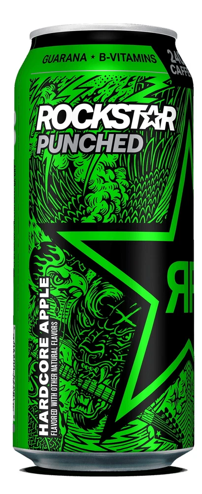 Product details Rockstar Energy fuels the hustle and celebrates those that put in the work. Explore our more than 25 flavors; including zero calorie, zero sugar and zero carb options to fit your lifestyle. Rockstar Energy Drink is designed for those who lead active lifestyles - from Athletes to Rock Stars. Includes 12 (16 oz) cans of Rockstar Punched Hardcore Apple Energy Drink. Includes 12 (16 fl oz) cans of Rockstar Energy Drink Punched Hardcore Apple flavor Traditional green apple flavor that provides an uncompromising, puckering sweet taste. Packaging may vary ROCKSTAR is scientifically formulated to provide an incredible energy boost for those who lead active and exhausting lifestyles-from athletes to rock stars. PepsiCo is one of the world’s leading food and beverage companies serving more than 200 countries and territories around the world. For more than 50 years, as tastes, trends and lifestyles have changed, PepsiCo has evolved with them Rockstar Energy fuels the hustle and celebrates those that put in the work. Explore our more than 25 flavors; including zero calorie, zero sugar and zero carb options to fit your lifestyle.