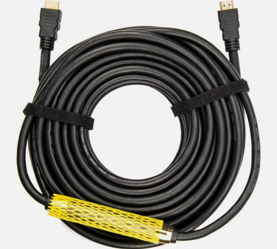 Enjoy your 4K content over extended distances when you connect your compatible equipment with the 25' black Rocstor Active Premium High-Speed HDMI Cable with Ethernet . It supports resolutions up to 4K at 60 Hz, allowing it to work with a variety of modern equipment. To support these features over its length, this cable has an inline signal amplifier.