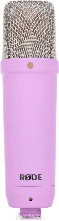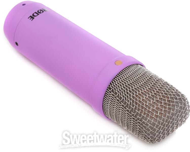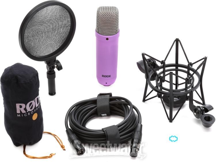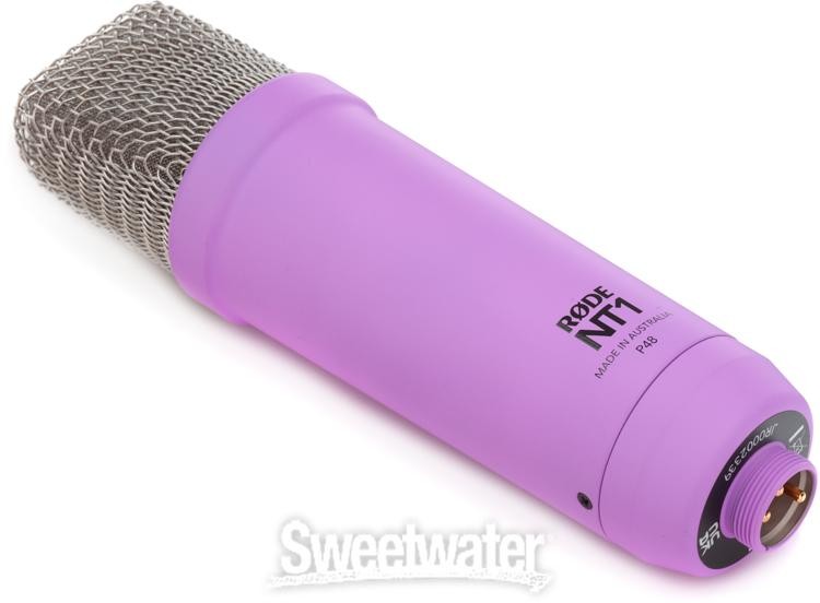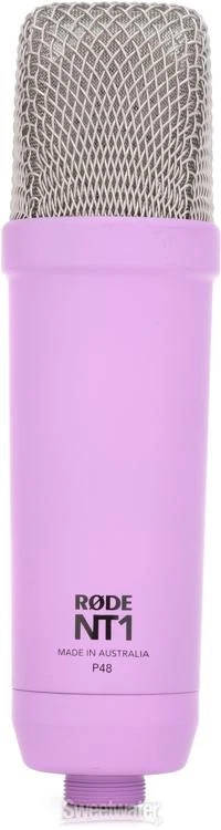 High-class Condenser Versatility The NT1 Signature Series microphone represents the pinnacle of Rode's iconic NT1 design, thoughtfully constructed and reasonably priced to fit the likes of any level studio environment. Its traditional large-diaphragm cardioid design is a coveted quality among a range of musicians, vocalists, and content creators. Further, an emphasis on low noise guarantees solid, versatile performance on any project. Bass-heavy vocals and high-end instrument tones are no threat to the NT1's wide 20Hz to 20kHz frequency range, ensuring crystalline occupancy over the entire audial spectrum. To top everything off, the NT1 Signature Series microphone includes an SM6 combination shockmount and pop filter, plus a 6-meter XLR cable for instant utility! If you're looking for a reliable, time-trusted microphone option at a fantastic price, look no further than the NT1 Signature Series microphone from Rode.Proprietary NT1 signal delivery Sweetwater recording pros were happy to discover that Rode took no Sweetwater is an Authorized Rode Dealer Genuine New Item Sweetwater's 2-year warranty Rode NT1 Signature Series Condenser Microphone with SM6 Shockmount and Pop Low-noise Large-diaphragm Cardioid Condenser Microphone with 3-pin XLR Output, SM6 Combination Shockmount Pop Screen, and XLR Cable - Purple High-class Condenser Versatility The NT1 Signature Series microphone represents the pinnacle of Rode's iconic NT1 design, thoughtfully constructed and reasonably priced to fit the likes of any level studio environment. Its traditional large-diaphragm cardioid design is a coveted quality among a range of musicians, vocalists, and content creators. Further, an emphasis on low noise guarantees solid, versatile performance on any project. Bass-heavy vocals and high-end instrument tones are no threat to the NT1's wide 20Hz to 20kHz frequency range, ensuring crystalline occupancy over the entire audial spectrum. To top everything off, the NT1 Signature Series microphone includes an SM6 combination shockmount and pop filter, plus a 6-meter XLR cable for instant utility! If you're looking for a reliable, time-trusted microphone option at a fantastic price, look no further than the NT1 Signature Series microphone from Rode. Proprietary NT1 signal delivery Sweetwater recording pros were happy to discover that Rode took no shortcuts when designing the NT1 Signature Series condenser microphone. A familiar 1-inch large-diaphragm HF6 condenser capsule with a cardioid polar pattern ensures the rich tonal qualities expected of a traditional NT1 microphone. Moreover, 4dBA of A-weighted equivalent noise means you'll have little to no interruptions in any signal path, keeping your recordings clear and consistent in any studio environment. A 20Hz to 20kHz frequency range and high SPL handling top off the NT1 Signature Series' sound construction to present wide-reaching audio capture with an extremely dynamic range. If you're familiar with Rode's iconic NT1 sound, you'll be right at home with an NT1 Signature Series microphone in your setup. Bundled with the SM6 shockmount and pop screen Rode wasn't content to supply the NT1 with any ordinary shockmount. That's why they came up with the SM6 combination shockmount and pop screen. The entire frame of the SM6 is made from an engineering-grade polymer, which provides excellent stability without much added weight. That makes the NT1 incredibly easy to use with any ordinary microphone stand in your studio. A dual Lyre suspension system offers superior resistance to vibration with none of the drawbacks of conventional rubber-band shockmounts. The SM6's clamp is robust and easy to operate, and the pop filter offers excellent plosive protection. Rode NT1 Features: A signature take on Rode’s compellingly popular NT1 condenser microphone model Large-diaphragm HF6 1-inch condenser capsule with cardioid polar pattern — perfect for vocal and instrument recording, podcasts, streaming, and more Extended 20Hz–20kHz frequency range ensures a superior, balanced signal on all ends Low-noise (4dBA) capture for record-breaking condenser clarity Ultra-high SPL handling accommodates tracking at all dynamics Industry-standard 3-pin XLR output connection Included combination shockmount and pop filter for instant integration into your recording setup Premium scratch-resistant finish Specification Detail Microphone Type Condenser Polar Pattern Cardioid Diaphragm Size 1" Frequency Response 20Hz-20kHz Max SPL 142dB SPL Output Impedance 100 ohms Sensitivity -32dBV/Pa Self Noise 4dB (A weighted) Connector XLR Color Purple Power Source 48V phantom power Dimensions 7.44" x 1.96" x 1.96" Weight 1 lbs. Included Accessories 1 x SM6 Shockmount with Pop Filter, 1 x 19.6' XLR Cable RETURN INFORMATION We want you to be completely happy with your purchase from Sweetwater. If you are not satisfied with your product, you may return it for a refund of the purchase price within 30 days. If your purchase was eligible for Free Shipping, the shipping cost will be deducted from your credit or refund. Returns must be in the complete and original packaging with all accessories and complete documentation (Owner's Manual, warranty card, quick start guides, etc.), show no signs of wear or use, and include a Return Authorization number or be subject to a restocking fee.