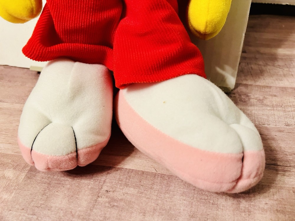 Items looks new, no signs of wear, stains, tears or holes on fabric. Bow tie is still intact. Orange hair still intact. Feet are clean. Red overalls still clean. See pictures on condition of item. you have any questions please ask. Check out my other items I have listed. .