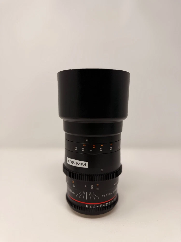 Rokinon 135mm T2.2 Cine ED UMC Lens (Canon EF) – Fully Functional, Excellent Condition! Description: The Rokinon 135mm T2.2 Cine ED UMC is a high-quality telephoto cinema lens designed for filmmakers and videographers who need stunning image quality with precise manual focus control. With a fast T2.2 aperture , this lens excels in low-light conditions and provides a shallow depth of field for beautiful subject isolation. The extra-low dispersion (ED) glass minimizes chromatic aberrations, while the multi-coated optics reduce flares and enhance contrast. This lens is in excellent condition , fully tested, and ready for professional use. Condition: ✔️ Fully functional – no issues with image quality or mechanics ✔️ Optics are clean and free of scratches ✔️ No major signs of wear ✔️ No front or rear lens caps included Key Features: ✅ 135mm T2.2 Telephoto Cine Lens – Ideal for portraiture, close-ups, and cinematic telephoto shots ✅ Fast T2.2 Aperture – Excellent for low-light shooting and achieving soft background blur ✅ Extra-Low Dispersion (ED) Glass – Minimizes chromatic aberrations for sharper images ✅ Multi-Coated Optics – Reduces flares and enhances contrast ✅ De-Clicked Aperture Ring – Smooth, silent exposure adjustments ✅ Cinema-Style Focus and Aperture Gears – Compatible with follow-focus systems ✅ Canon EF Mount – Works with full-frame and Super 35mm sensors What’s Included: ✔️ Rokinon 135mm T2.2 Cine ED UMC Lens (Canon EF Mount) ❌ No Front or Rear Lens Caps 💰 Fast Shipping & Secure Packaging! 🔥 Buy with Confidence – Trusted Seller with Positive Feedback!