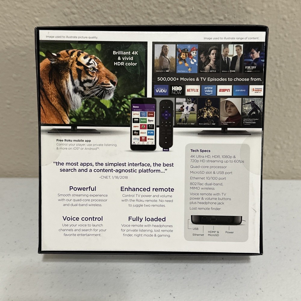Roku - Ultra 4K Streaming Media Player with Enhanced Voice Remote - Black NEW