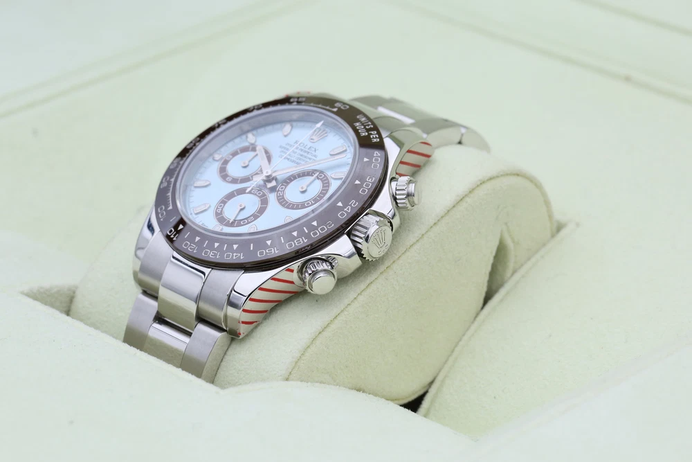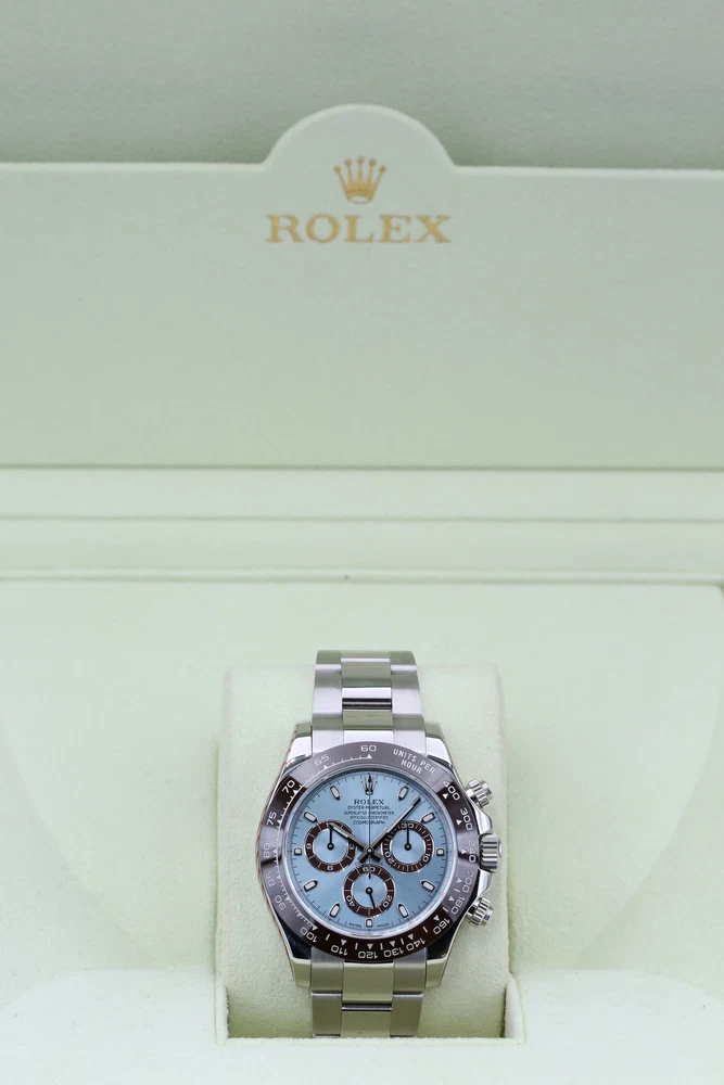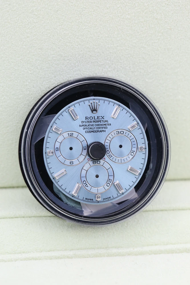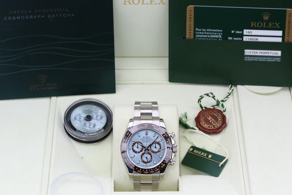 eBay Home Collections All Watches Menu Watches by Brands Rolex Omega Brietling Cartier Patek Audemars Piguet Tudor Watches by Models Day Date DateJust Explorer Sea Dweller Deepsea GMT Sub Mariner OP41 Air King Daytona Sky Dweller Yachtmaster DateJust 26 DateJust 41 Cellini Mens Watches Ladies Watches Watch Rolls Partnered with - Zing Cover Free UK Delivery - At Checkout 5 Star Reviews - On Trustpilot Pay With Bitcoin - At Checkout Discover our collection of exquisite, high-precision timepieces Explore Collections Rolex 116506 Blue DAYTONA 40mm 2014 BRAND: Rolex MODEL: 116506 CASE SIZE: 40mm BOX: Yes PAPERS: Yes CONDITION: Preowned REFERENCE: DAYTONA CASE: Platinum DIAL: Blue YEAR: 2014 Description Payment Delivery Returns Description WELCOME TO KETTLE CLUB WATCHES HERE WE HAVE THE ROLEX DAYTONA COSMOGRAPH- PLATINUM (2 DIAL OPTIONS) THIS IS A FULL PLATINUM 40MM MODEL THAT COMES ON THE FAMOUS OYSTER BRACELET, IT IS EQUIPT WITH A STUNNING ICE BLUE DIAL AND AS AN ADDITIONAL BENEFIT THIS WATCH WILL COME WITH A SECOND DIAL OPTION THE DAZZLING ICE BLUE BAGUETTE DIAMOND DIAL. THIS WATCH BOASTS AN ACCURATE CHRONOGRAPH ON 3 CONTRASTING CHOCOLATE SUB-DIALS, A HI-TECH CERACHROM BEZEL WITH CHOCOLATE CERAMIC INSERT AND A TACHYMETRIC SCALE ALLOWING DRIVERS TO MEASURE AVERAGE SPEEDS OF UP TO 400 MPH.THE NAME NODS TO DAYTONA, FLORIDA—THE HOME OF A STRONG PASSION FOR SPEED AND MOTOR RACING THAT EMERGED IN THE EARLY 20TH CENTURY. THE RELATIONSHIP BETWEEN ROLEX AND MOTOR RACING STRENGTHENED IN 2013 WHEN THE WATCHMAKER DECIDED TO ENTER THE WORLD OF FORMULA 1, AS GLOBAL PARTNER AND OFFICIAL TIMEPIECE OF THE EXHILARATING SPORT. THIS WATCH INCLUDES • ORIGINAL ROLEX BOX (INNER AND OUTER) • ORIGINAL ROLEX MANUAL • LEATHER CARD HOLDER • ROLEX SWING TAGS (GREEN & RED) • ORIGINAL ROLEX WARRANTY CARD THIS WATCH HAS HAD A FULL INSPECTION AND IS IN IMMACULATE CONDITION. IT WAS ORIGINALLY PURCHASED IN JULY 2014 AND HAD A FULL SERVICE BY ROLEX IN DECEMBER 2021. THE ROLEX WARRANTY HAS NOW EXPIRED BUT THE WATCH IS UNWORN SINCE THE SERVICE DATE. THE KETTLE CLUB ARE HAPPY TO PROVIDE A COMPLIMENTARY 1 YEAR WARRANTY WITH THIS WATCH. WHY CHOOSE US? • AUTHENTICITY GUARANTEED: EVERY WATCH IS THOROUGHLY INSPECTED AND VERIFIED FOR AUTHENTICITY. • EXPERT SERVICE: OUR TEAM OF EXPERTS IS DEDICATED TO PROVIDING EXCEPTIONAL CUSTOMER SERVICE AND SUPPORT. • COMPETITIVE PRICING: ENJOY COMPETITIVE PRICING ON ALL OUR LUXURY TIMEPIECES. ALL OF OUR WATCHES COME WITH A COMPLIMENTARY 1 YEAR WARRANTY, THIS IS IN ADDITION TO ANY REMAINING MANUFACTURERS WARRANTY. ALL WATCHES ARE SHIPPED UK WIDE FOR FREE. ON INTERNATIONAL SHIPPING WE USE FEDEX, FULLY INSURED. OUR INTERNATIONAL CUSTOMERS SHOULD BE AWARE THEY MAY BE LIABLE TO PAY CUSTOMS DUTY COSTS ON IMPORTS. WE WILL NOT COVER ANY CUSTOMS DUTY COST. Payment Delivery is free of charge to most of the UK on all items in store. Products with a 7-14 working day lead time are delivered by our dedicated courier service. They will contact you before your delivery to confirm a date and give you a three-hour time slot for your delivery. Next-day availability is stated on the product page. Orders placed before 1:30 pm on selected vendors, Monday-Thursday will be delivered the next working day. Orders placed after 1:30 pm will be delivered the next following working day. Orders placed before 1:30 pm on Friday will be delivered the following Monday, any time after 1:30 pm the order will be delivered on Tuesday. Alternatively, you can select a convenient delivery date for yourself on the product page before the checkout. Delivery Deliveries within the UK are made using the Royal Mail Special Delivery service. Deliveries outside the UK are made using either DHL or Fedex depending on the size of the package and the location. UK postage and international shipping are both included in advertised price. Alternatively, please contact us before placing an order. A signature will be required for receipt of the goods by an adult (age 18 years or over) at the delivery address (whether yourself or a member of your household). If no-one is available when the carrier attempts delivery, the carrier may leave a calling card for you to re-arrange delivery at a more convenient time. Alternatively, you may need to collect the goods from your local delivery office provided you can produce adequate proof of identity. We will only deliver to the delivery address given in your order. If you pay by debit/credit card the goods must be dispatched to the billing address of the card holder. However, if you require the goods to be delivered to a work address please ensure that this is included when placing the order. The delivery address can not be changed after an order has been made and payment received. Watches may be collected from our offices but by appointment only for security purposes. Returns We are confident that you will love your purchase, but we also like to provide peace of mind when shopping online. We offer a 14 day returns period from the date of delivery, entitling you to a full refund or exchange. If for any reason you would like to make a return, please contact a member of our team by email or phone to register your return. After receiving confirmation and return and our secure postal address details from a member of the team, items may be returned via Royal Mail special delivery or returned to the store by appointment only: Store address :(This is for appointments only, no returns to be made to this address) KettleClub Address: 53 Liverpool Street, London EC2M 7QN Once your return is received and inspected, we will send you an email or call you to notify you that we have received your returned item. We will also notify you of the approval or rejection of your refund. If you are approved, then your refund will be processed, and a credit will automatically be applied to your credit card or original method of payment, within 5-7 working days. Shop Rolex Shop Audemars Shop Tudor Shop Panerai Shop Patek Shop