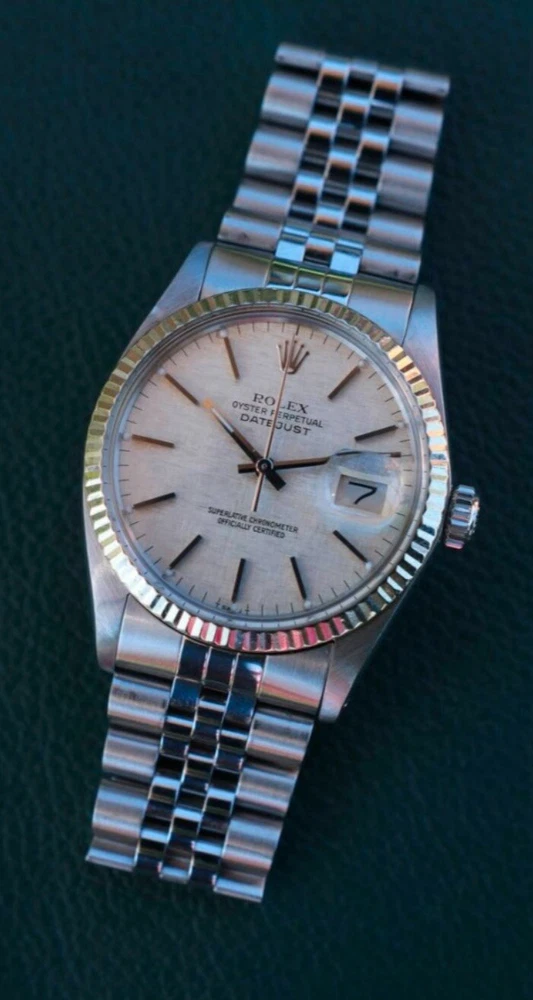 With Original Box/Packaging:NoReference Number:16014Lug Width:20 mmDisplay:AnalogDial Pattern:LinenDepartment:Men'sYear Manufactured:1980-1989Brand:RolexWater Resistance:50 m (5 ATM)Caseback:SolidIndices:Baton IndexesBezel Color:SilverWatch Shape:RoundMovement:Mechanical (Automatic)Bezel Type:FlutedFeatures:Chronometer, Date IndicatorBand Color:SilverWith Service Records:NoCase Material:Stainless SteelCountry/Region of Manufacture:SwitzerlandVintage:YesStyle:Luxury: Sport StylesWith Manual/Booklet:NoUPC:Does not applyWith Papers:NoBand Material:Stainless SteelModel:Rolex DatejustCase Thickness:13 mmgtin13:Does not applyDial Color:LinenSeller Warranty:NoCase Size:36 mmCase Color:SilverType:LuxuryCustomized:No