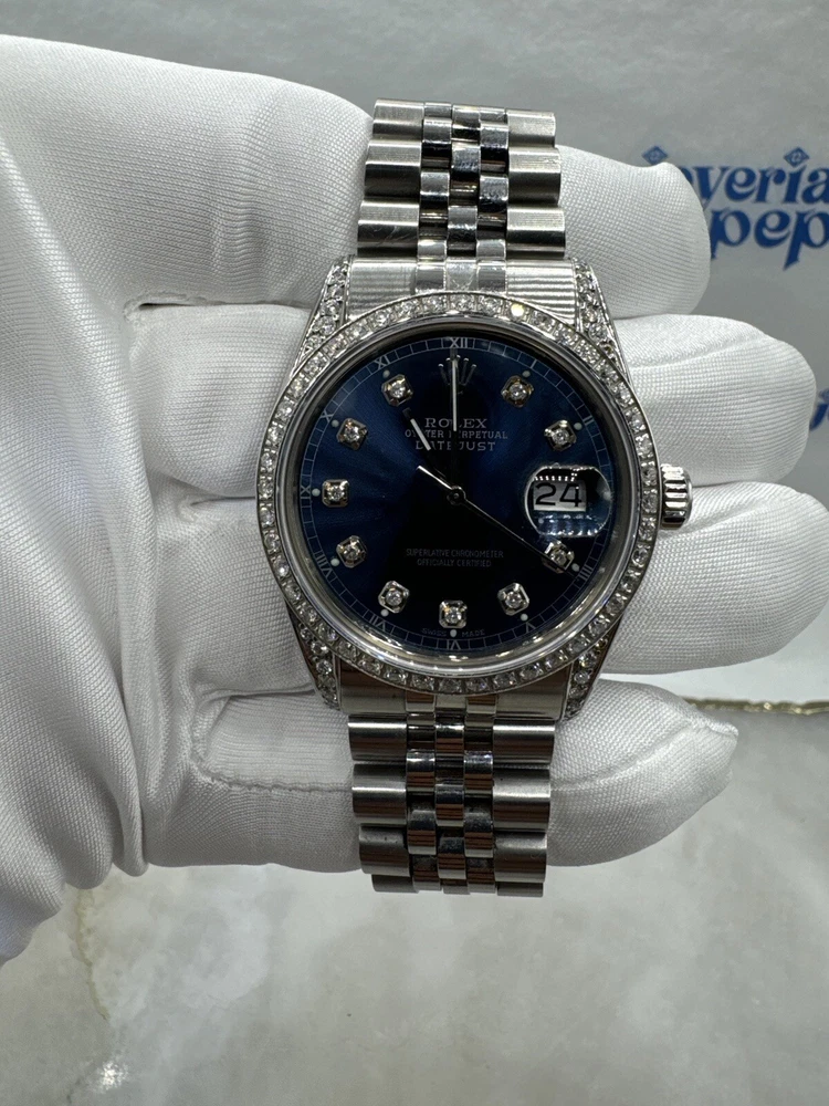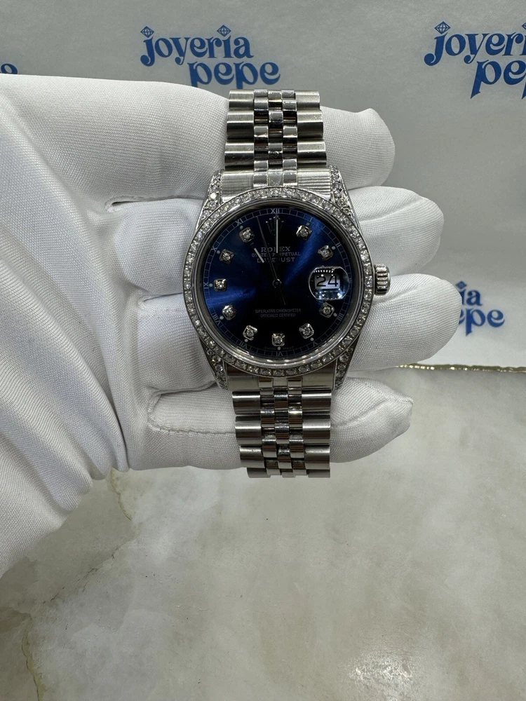 Rolex Diamond Bezel & Diamond Dial Jubilee Band Blue Dial. Condition is Pre-owned. Shipped with USPS Ground Advantage.