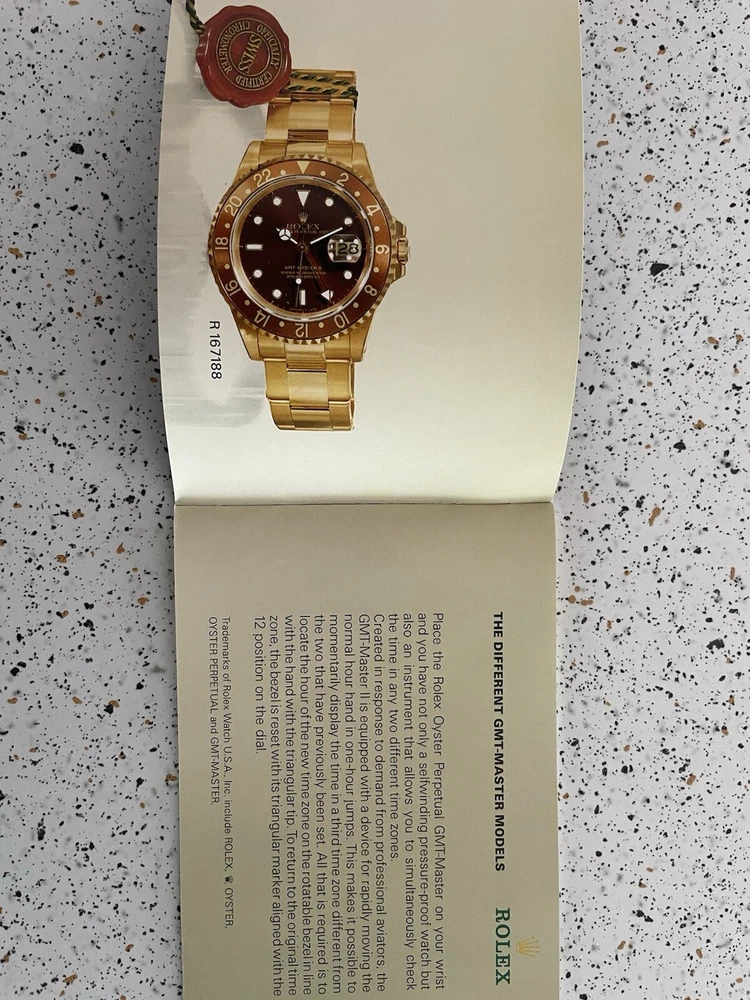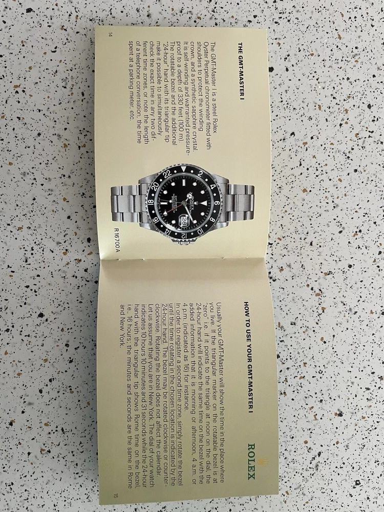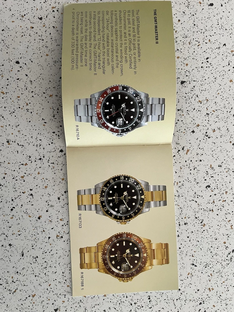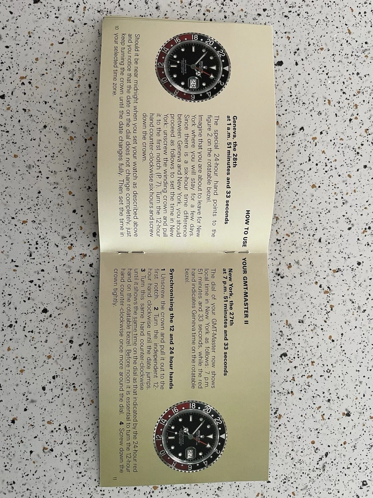 GMT Master booklet with information and instructions for GMT Master I and GMT Master II watches. In nice condition, no crimped pages. Is not brand new so there are some small imperfections. Pages numbered to 18. Please ask any questions. Thanks
