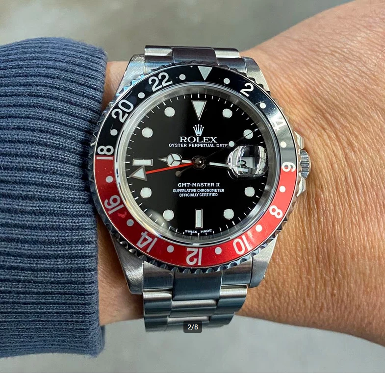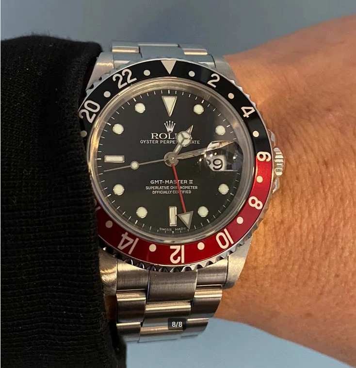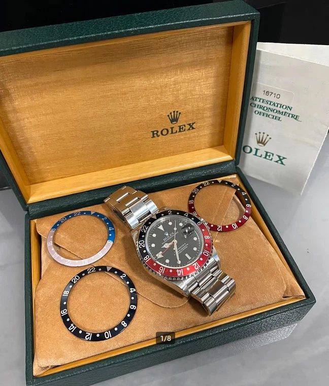Item Description: Up for sale is a stunning Rolex GMT-Master II 116710LN , a quintessential timepiece that embodies luxury, precision, and functionality. This watch is not just a statement piece; it is a tool designed for the modern traveler, featuring a dual-time zone function that has made it a favorite among pilots and globetrotters alike. Key Features: Model: Rolex GMT-Master II Reference Number: 116710 Case Material: Stainless Steel Bezel: Black Cerachrom (Ceramic) with 24-hour markings Dial Color: Black with luminous hour markers Bracelet: Oyster bracelet with Oysterlock clasp Movement: Automatic, Caliber 3186 Water Resistance: Up to 100 meters (330 feet) Condition: This watch is in excellent condition, having been meticulously cared for. The stainless steel case shows minimal signs of wear, and the black ceramic bezel is scratch-resistant and pristine. The sapphire crystal is flawless, ensuring perfect visibility of the dial. Included Accessories: This listing includes an exceptional bonus: four original Rolex bezel inserts , allowing you to customize your watch according to your style or preference. Each insert is genuine and adds versatility to this already iconic timepiece. Original Black Bezel Insert (installed) Original Pepsi Bezel Insert (red/blue) Original Coke Bezel Insert (black/red) Original Root Beer Bezel Insert (brown/gold) These inserts are in excellent condition and have been sourced directly from authorized dealers. Authenticity Guarantee: Rest assured, this Rolex GMT-Master II comes with all necessary documentation to verify its authenticity. Included are: Original Rolex warranty card Instruction manual Service papers (if applicable) The serial number can be verified through official Rolex channels.