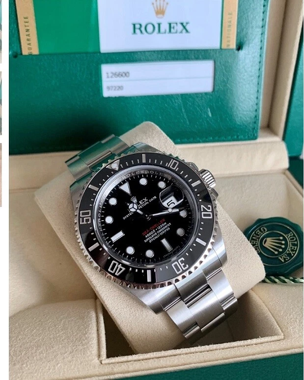 Rolex Sea-Dweller 126600 Silver Oyster Bracelet Black Bezel Men's Dive Watch