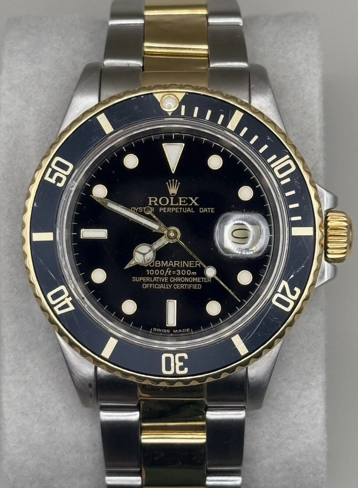 Rolex Submariner Two Tone Black Dial 40mm 16803!
