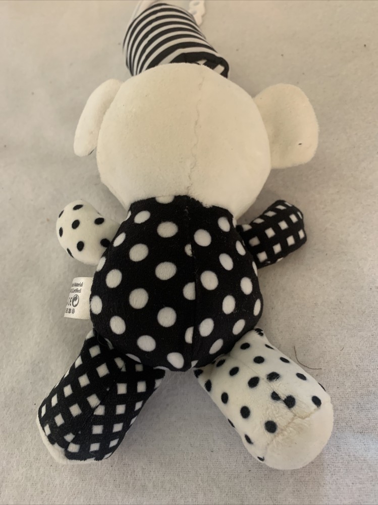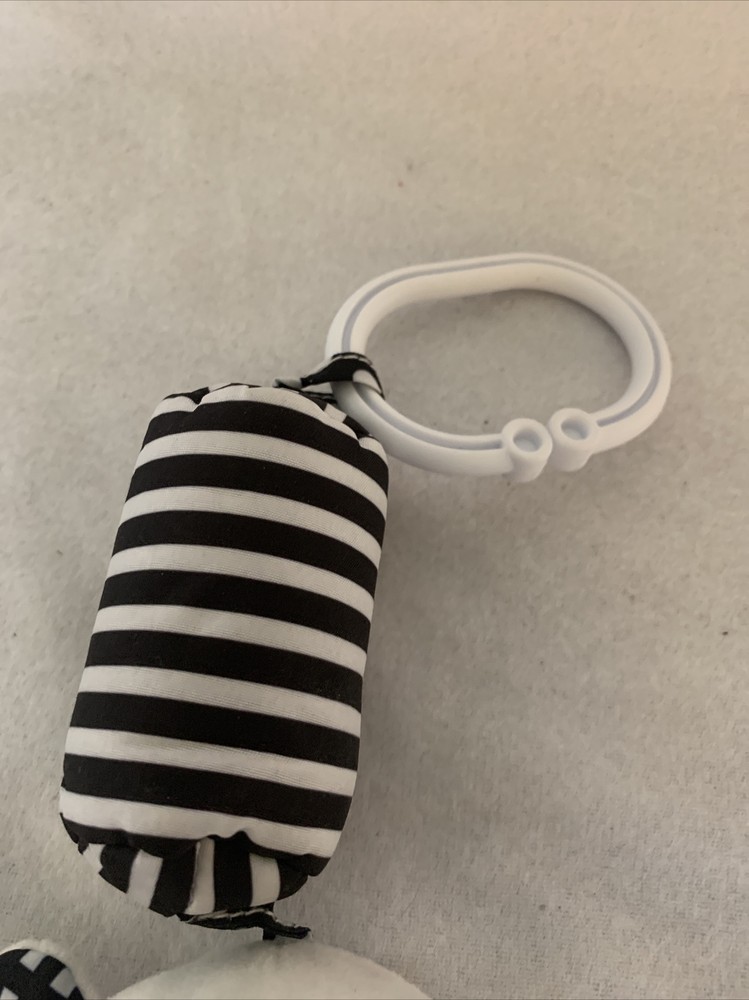 Rolimate Baby Toy Black White Plush Bear Crib Stroller Clip Chime Squeak Crinkle.