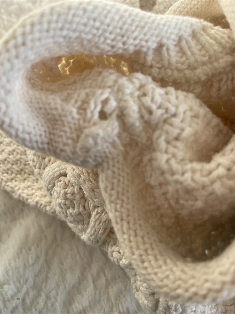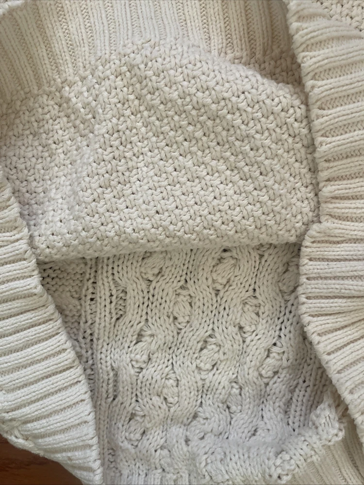 Nice vintage sweater. Please see photos for actual measurements. Sleeves are shorter than the usual long sleeves. Probably stretchable. There is an area at the top that could use a reinforcement stitch.