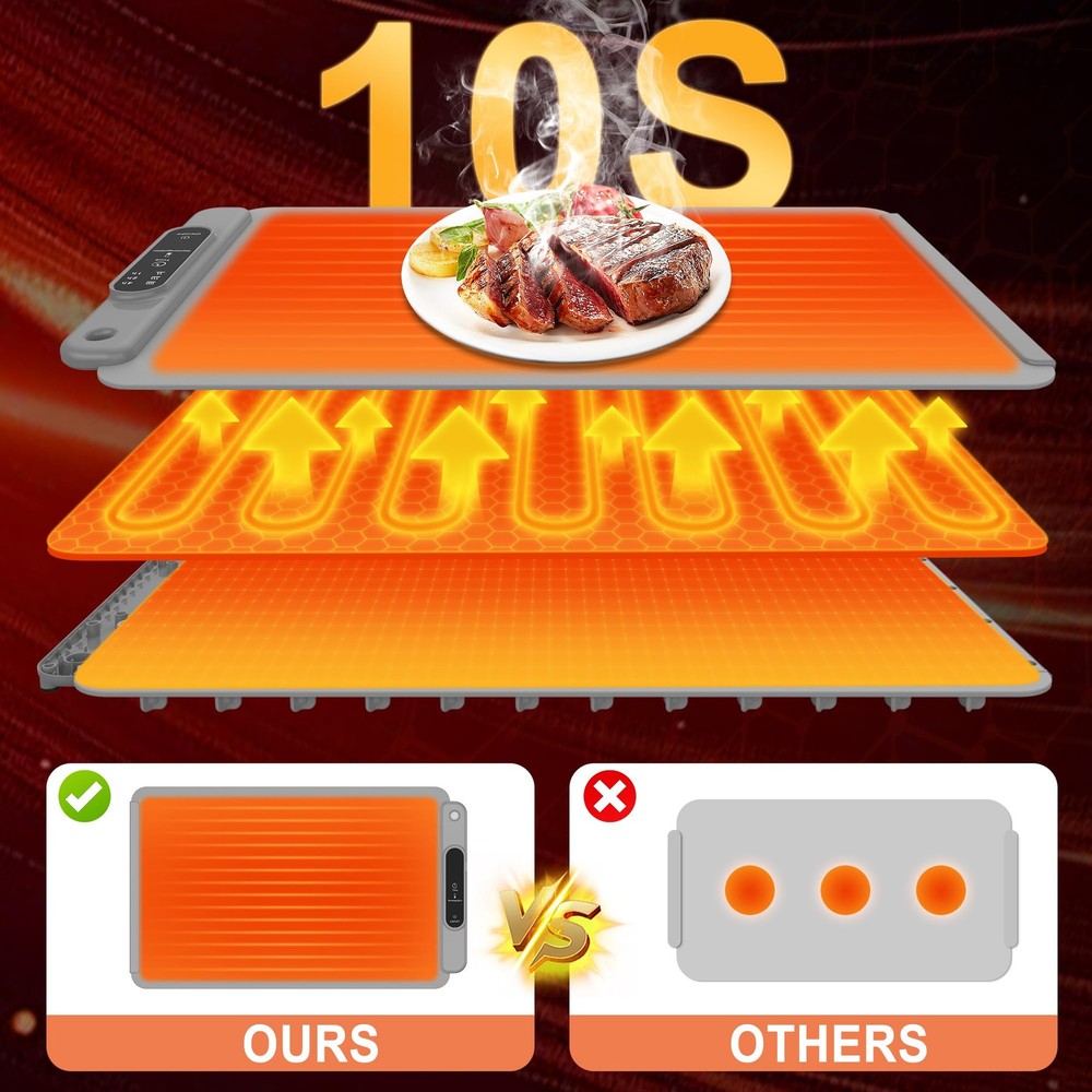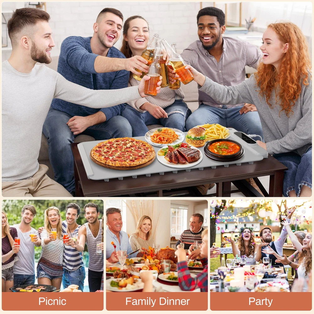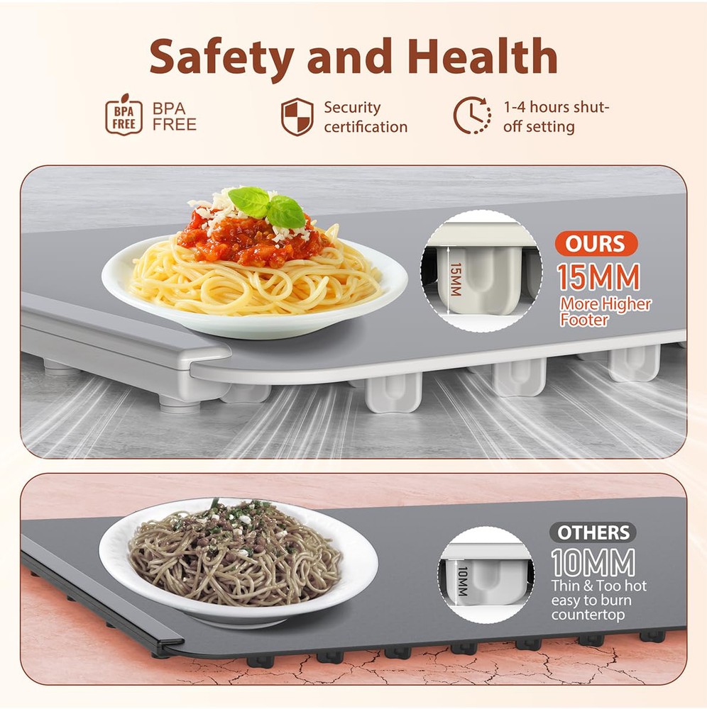 Warming Mat for Food - Full Surface Heating, Rollable Food Warming Mat & Premium Silicone Nano-Material,3 Temperature Settings,Food Warmers for Parties, Suit for Family Gatherings,Holidays Description Features: Heating Plate for Food - Keep Dishes Warm with Adjustable Temperature, Energy Efficient, Non-slip Surface, Choice for Hot Plate for Food Warming. Rapid Heating: Equipped with advanced heating elements, this heating plate warms up quickly to keep your dishes at the perfect temperature in no time. Even Heating Distribution: Ensures uniform heating across the entire surface, preventing hot spots and keeping every dish equally warm. Multiple Temperature Settings: With adjustable temperature controls, you can choose the ideal heat level for different types of dishes. Safe and Durable: Made of high-quality materials, it is built to last and features safety protections like overheat protection. Product Details: Color: Grey Material: silica gel Special Feature: Automatic Shut-Off Brand: SynWave Heating Elements: 6 Product Dimensions: 25.5"D x 15.5"W x 1.5"H Manufacture Year: 2024 Manufacturer: SynWave Color: Grey Material: silica gel Special Feature: Automatic Shut-Off Brand: SynWave Heating Elements: 6 Product Dimensions: 25.5"D x 15.5"W x 1.5"H Manufacture Year: 2024 Manufacturer: SynWave Item Weight: 4.29 pounds Country of Origin: China Item model number: RCB-003 Date First Available: October 28, 2024 Handling We will ship all orders within 3 business days of payment. Delivery We do not ship outside of the Continental US. Feedback We take our reputation seriously, we buy and sell online, so we understand the value of trust. If you are unsatisfied with your order, please contact us and we will work with you to resolve it to your satisfaction.