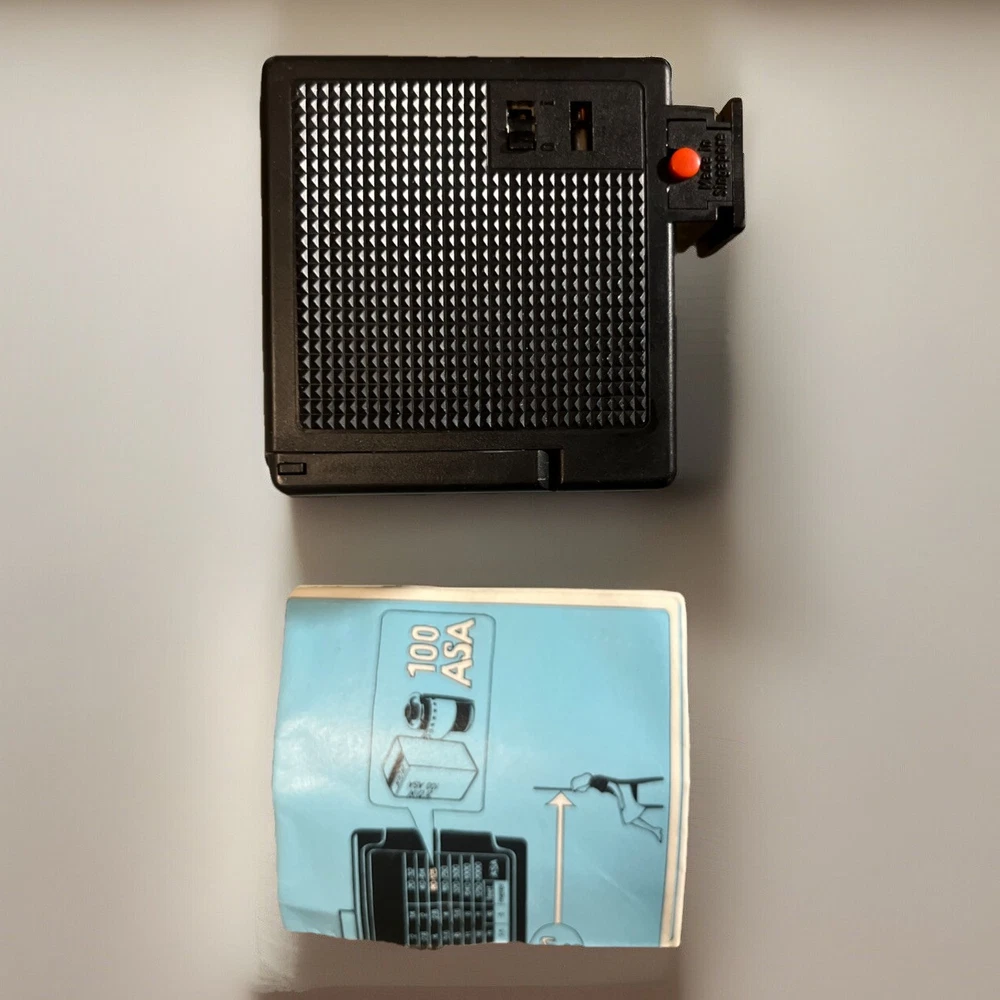 The Rollei 100XL Miniature Electronic Flash is a compact and versatile camera accessory compatible with Rollei cameras and other universal brands. It features a convenient hot shoe mount interface for easy attachment and use. This flash unit, manufactured in Singapore, comes with paperwork and has been tested for functionality by a US seller, ensuring its reliability for capturing high-quality photographs in various lighting conditions. Ideal for photographers seeking a reliable and portable flash option for their camera setup.