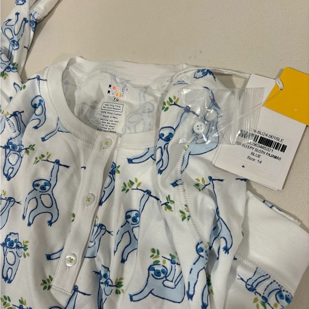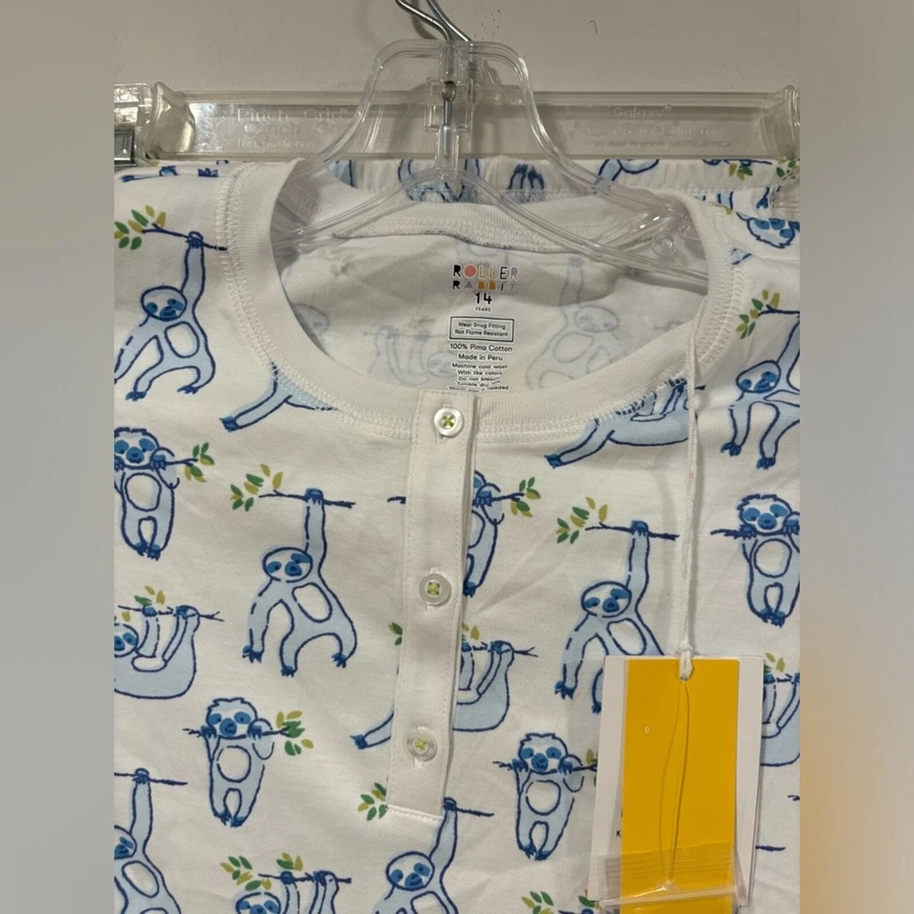 Bought these for my daughter and she doesnt like long sleeve/pant pajamas so we had to get the adult shorts set instead. Excellent condition, never worn, new with tags. If you've never bought roller rabbit before, size up a size or two- they are fitted.