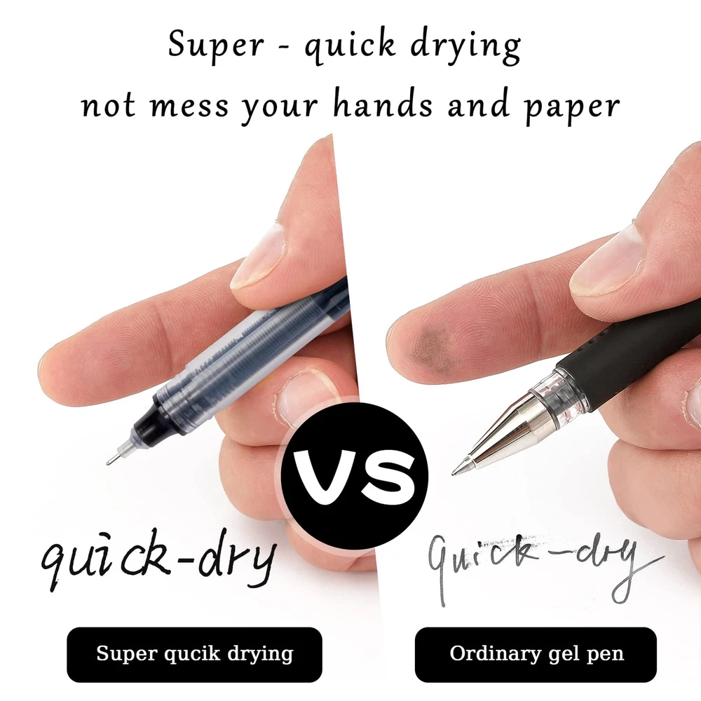 NO Leaking - Quick-drying Needle Rollerball Pens: rolling ball pen with precision tip and smooth writing ink, the rollerball ink dries quickly that help you keep work neat and organized, will great to meet your demands. Smooth flowing ink: these 0.5 mm ballpoint pens with built-in precision ink output regulator, which can ensure liquid ink flowing evenly that give you smooth writing experience which have good quality ink and will not leak ink, even if you use for a long time. Transparent Pen Tube Design: Transparent rollerball pen tube has a unique design with a transparent pen case, you can clearly see the ink supply Wide range of use: : these black liquid ink roller ball pens are suitable for using in class, marking different words and doing some important notes, great gifts for office, school, home, company, students, etc.