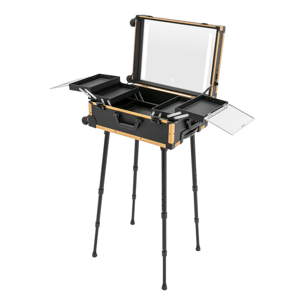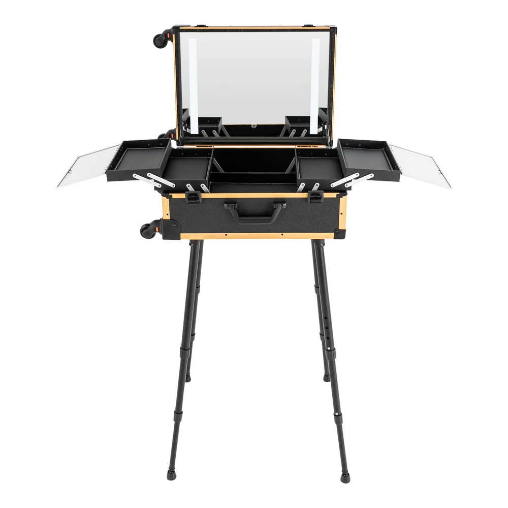 Rolling Makeup Case Trolley Train Box Organizer with LED Lighted Mirror High-quality Material: The product is made of high-quality aluminum alloy, medium fiberboard, ABS, and PVC with oxidation and electroplating processes, which are strong, pressure-resistant, waterproof, impact-resistant, corrosion-resistant, rust-resistant , and has a long service life. Humanized Design: The large mirror with LED light can be easily adjusted between warm, neutral and white light with the touch of the switch and the brightness of the light can be infinitely adjusted with a long press of the switch, which can help you see more details of your makeup and restore the true state of your makeup. Categorized Storage: This product has four storage trays for makeup brushes, nail polish, foundation, eye shadow, hair clips, and other tools (not included). The neat and orderly distribution and sorting trays keep the tools in order, which is an essential and good helper for you. Convenient to Use: This product is equipped with a 12V charging jack, an external power jack, and a power jack. After connecting the power cord, it can be connected to an external curling iron, cell phone, and hair dryer (not included) to meet your needs when working. Protect Your Privacy : Two locking buckles with keys securely protect your valuables inside the box and maximize your privacy. Flexible Movement: 4 universal wheels, a telescopic trolley rod, and a top handle make it easy to move the case up and down stairs, in and out of cars and elevators. The detachable universal wheels enable you to replace them conveniently when damaged, which is easy and cost-efficient. Ideal Gift: With a stylish appearance and practical functions, this product is an ideal birthday and holiday gift for family, friends, fashionistas, and beauty lovers. Effortless Cleaning: Thanks to the smooth surface and simple structure, you can easily wipe off the dirt on it with a soft cloth. Good Customer Service: We stand behind all our guests and look forward to assisting you with your purchase. It is our pleasure to answer your confusion and questions. The end of the story between us is not "we sell and you buy". Details Adjustable Support Legs: The support legs have four adjustable heights (29.33in, 30.71in, 32.09in, and 33.46in) for people of different heights. Removable Tray: Two hooks and loops on the inside of the case make it easy to secure the tray and remove it for individual use. Wide Opening : With a wide opening, it is easy for you to store and retrieve certain items without messing up other items in the box. Application This product is suitable for travel, wedding, event, and home makeup use, and can organize makeup brushes, nail polish, foundation, eye shadow, hair clips, and other tools. It is ideal for makeup artists, hair stylists, nail technicians, and cosmetologists. Package Included 1* Makeup Case 4* Legs 1* Storage Bag 2* Keys 1* USB Cable 1* Power Cord All Accessories for Installation Payment Delivery details Terms of sales About us Contact us Payment We accept ebay payment 。 Fees such as import duties, taxes are not included in the item price or shipping costs. These charges are the buyer's responsibility. Delivery details Shipping: 2-9 working days to: USA Terms of sales We maintain high standards of excellence and strive for hundred percent customer satisfaction. Feedback is very important to us. We hope that you contact us immediately before you give neutral or negative feedback, so that we can address your concerns. It is impossible to address issues if we do not know about them! About us Your satis faction is our ultimate goal. We work hard to earn your trust and future business. Our certified technicians have tested each item before shipping. The unit comes with 1 year limited warranty on all manufacturing defects. a) If you receive a defective item, you may return it or ask for a discount. Please contact us within 14 days after you receive the package. b) What you returned must be intact and in its original packaging as re? u. Customer is responsible for shipping costs of the returned item. c) We will cover the cost of shipping back t with the shipping rate indicated in the registration page. We will send you a new unit or refund the full payment you paid. Thank you. Contact us Business Hour Business Hour: Monday To Friday: 8:30 AM to 5:00 PM (Beijing China time) Due to time zones, our reply to your questions may not be immediately. But within above working time, we will reply your email within 24 hours. If it's non-workdays, please kindly be patient and wait till Monday. Please contact us with ebay message. Please feel free to contact us if you have any questions. Monday To Friday: 8:30 AM to 5:00 PM (Beijing China time) Due to time zones, our reply to your questions may not be immediately. But within above working time, we will reply your email within 24 hours. If it's non-workdays, please kindly be patient and wait till Monday. Please contact us with ebay message. Please feel free to contact us if you have any questions. On Feb 10, 2025 at 23:25:40 PST, seller added the following information: