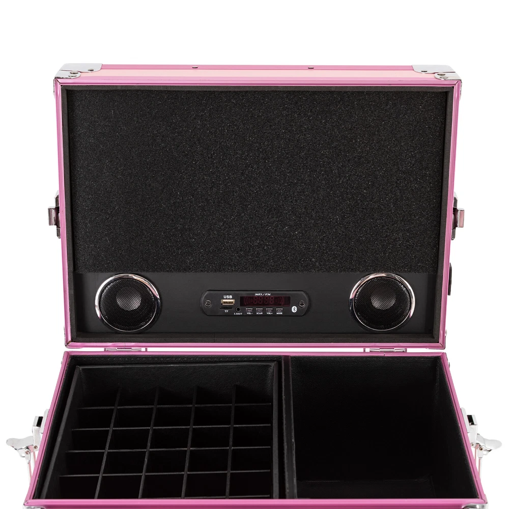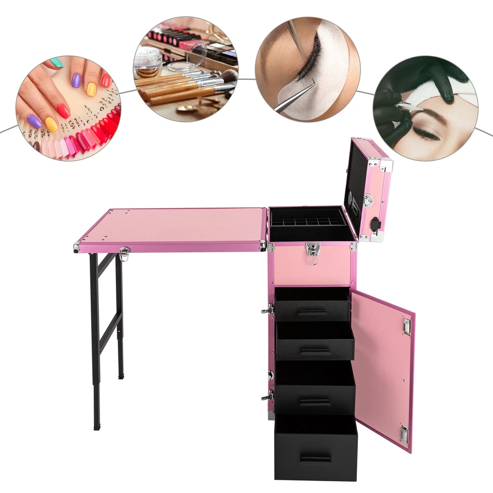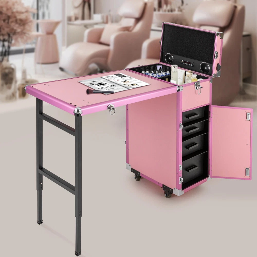 Rolling Manicure Table Nail Desk Travel Train Case Cosmetic Trolley & Speaker US Rolling Manicure Table Nail Desk Travel Train Case Cosmetic Trolley & Speaker US00000000000 Description A good hairstyle and makeup can bring us a new look, but messy tools often affect our work efficiency. Our cosmetic trolley storage organizer can eliminate your concerns. Made of MDF, aluminum and iron, this case is durable and flexible for moving, so you can use it for a long time and save costs. In addition, the large capacity and compact design can provide convenience for your daily use and carry. Come and build your own beauty boutique right now! Specifications Material: MDF, Aluminum, Iron, PVC Process: Die Casting, Electroplating Color: Pink Style: Modern Shape: Rectangular Plug Type: US Standard Power Cord Length: 1.8m/5.91ft Maximum Load Capacity: 50kg/110.23lbs Net Weight: 16.45kg/36.27lbs Gross Weight: 19.5kg/42.99lbs Table Expanded Dimension: 57*38*68cm/22.44*14.96*26.77inch Package Size: 88*50*39cm/34.65*19.69*15.35inch Package Included 1*Cosmetic Trolley Storage Organizer 1*Remote Control 1*Adapter 2*Keys Key Features Sturdy and Durable: High-quality MDF, aluminum frame and iron clad corners with die casting and electroplating processes make the product impact-resistant, crash-proof and sturdy, you can use it for a long time without frequent replacement, which saves cost to a certain extent. Fingertip Magic: It is designed with multi-functional storage compartments, which is your "treasure box". It carries not only various tools, but also your magic and dreams. As if you raise your hand, you would conduct a colorful fingertip magic. Mobile Makeup Studio: It is equipped with 4 universal wheels, all with brakes that can be locked. It is also equipped with an expandable floor workstation that can be converted into an additional makeup workstation, and equipped with a portable mirror for easy indoor and outdoor makeup. Enjoy Music: It has 2 built-in music speakers, so you can play music by connecting it to Bluetooth, an SD card, and a USB port, allowing you or your guests to relax during the makeup process. Ample Space: It consists of a foldable table, an upper compartment with slots for small items, and a lower compartment with 4 removable drawers, which organize different items into one box to fully meet your storage needs. High Load-bearing: the rectangular frame and high-quality materials allow it to withstand up to 110.23 pounds without collapsing, so you can use it with confidence. High Safety and Privacy: Comes with 2 three-digit combination locks and 2 keys to provide double security and privacy for your belongings. In addition, side latch locks the table securely to the case when not needed without smashing your feet or taking up space. Protective Packaging: To prevent the product from being damaged during transportation as much as possible, this product uses foam that can effectively resist normal compression and drops. Details Long Power Cord: A 5.91ft long power cord meets the needs of long-distance use. Handle: The ergonomic handle makes it easy to move to the case. Hinge: It makes opening and closing more smoothly, and provides bigger opening angle(90°). Application This product can be widely used by hair stylists, pet groomers, makeup artists, and so on for storing scissors, makeup, jewelry, combs, and other items. It's also suitable for outdoor use, such as street performances, makeshift makeup rooms, or accessory stalls at flea markets and suitable for you to store tools or daily necessities when you go out. Notes Please keep the product away from corrosive substances. Please allow the slight color difference caused by the shooting light and 1-3cm error due to manual measurement, and make sure you do not mind before you order. Payment Delivery details Terms of sales About us Contact us Payment We accept ebay payment 。 Fees such as import duties, taxes are not included in the item price or shipping costs. These charges are the buyer's responsibility. Delivery details Shipping: 2-9 working days to: USA Terms of sales We maintain high standards of excellence and strive for hundred percent customer satisfaction. Feedback is very important to us. We hope that you contact us immediately before you give neutral or negative feedback, so that we can address your concerns. It is impossible to address issues if we do not know about them! About us Your satis faction is our ultimate goal. We work hard to earn your trust and future business. Our certified technicians have tested each item before shipping. The unit comes with 1 year limited warranty on all manufacturing defects. a) If you receive a defective item, you may return it or ask for a discount. Please contact us within 14 days after you receive the package. b) What you returned must be intact and in its original packaging as re? u. Customer is responsible for shipping costs of the returned item. c) We will cover the cost of shipping back t with the shipping rate indicated in the registration page. We will send you a new unit or refund the full payment you paid. Thank you. Contact us Business Hour Business Hour: Monday To Friday: 8:30 AM to 5:00 PM (Beijing China time) Due to time zones, our reply to your questions may not be immediately. But within above working time, we will reply your email within 24 hours. If it's non-workdays, please kindly be patient and wait till Monday. Please contact us with ebay message. Please feel free to contact us if you have any questions. Monday To Friday: 8:30 AM to 5:00 PM (Beijing China time) Due to time zones, our reply to your questions may not be immediately. But within above working time, we will reply your email within 24 hours. If it's non-workdays, please kindly be patient and wait till Monday. Please contact us with ebay message. Please feel free to contact us if you have any questions. Features Compact Design,Unique Appearance,high reliability Warranty 4 years Brand Unbranded Type Cosmetic