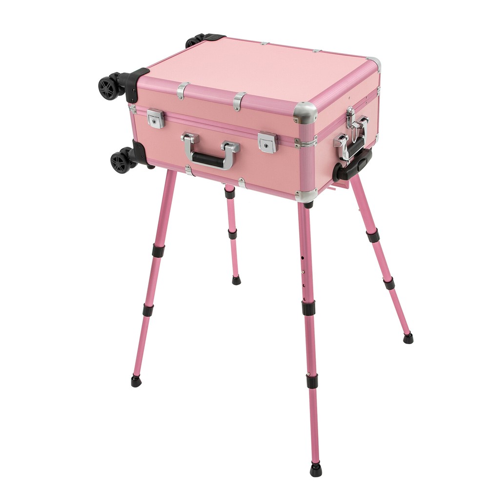 Rolling Professional Makeup Train Case - Travel Cosmetic Vanity Organizer