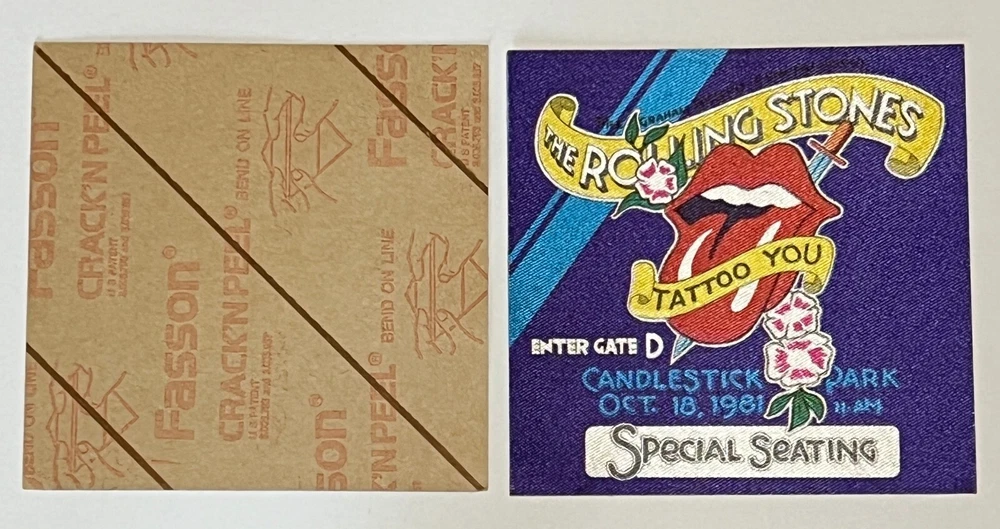 Rolling Stones Special Seating Backstage Pass Candlestick Park 10-18-81 - Tattoo You Tour Mint Condition - complete with the original backing. A rare, genuine, never used, backstage & special seating pass from the Rolling Stones show at San Francisco's Candlestick Park on October 18, 1981. The pass measures 3-3/4" x 3-3/4" *** Includes FREE Shipping *** This item is also shown in The Art of Rock - AOR 4.287 The Candlestick show also included the J. Geils Band, and George Thorogood & The Destroyers. The show was part of the Tattoo You U.S. Tour. This piece of art will be securely boxed for shipping. Please see photos - The photos are of the actual item for sale. I have other concert passes, tickets, CDs and memorabilia for sale - please check out my other listings https://www.ebay.com/usr/mikemac8 Questions? Let me know. Cheers!