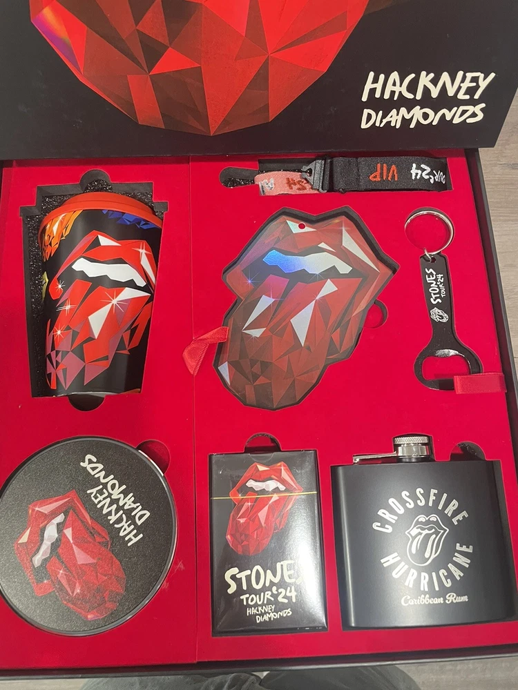 Get ready to rock with this exclusive Rolling Stones 2024 Hackney Diamonds Tour VIP Package Swag Box! This amazing collectible is a must-have for any music fan and features the iconic rock band's latest tour memorabilia. The package includes a swag box with multiple availabilities, perfect for fans of all ages. Experience the thrill of the concert with this original, authentic Rolling Stones item. This music memorabilia is perfect for collectors and enthusiasts alike, showcasing the band's legendary status in the rock & pop genre. Don't miss out on this opportunity to own a piece of music history.