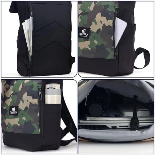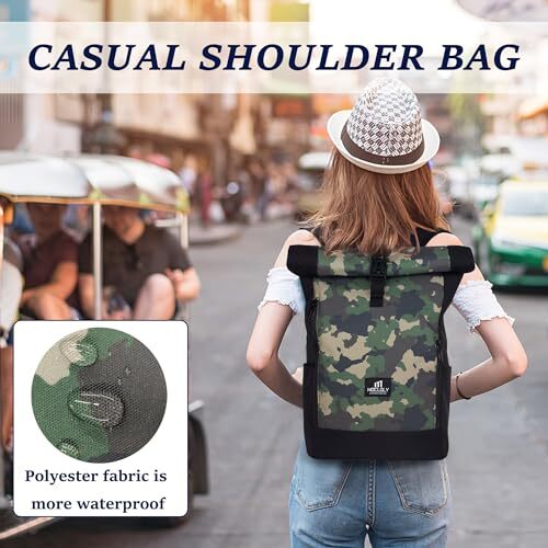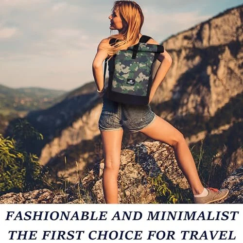 Rolltop Backpack for Women & Men with Laptop Compartment in Camouflage Design
