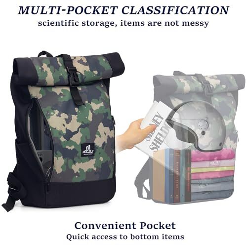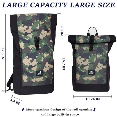 1. This rolltop backpack is a game-changer! The waterproof fabric keeps my laptop and essentials safe from rain, and the expandable design fits everything I need for work or travel. The camouflage style looks sleek, and the durable material holds up well. Super comfortable to carry, and the fast delivery was a nice bonus. Highly recommend!