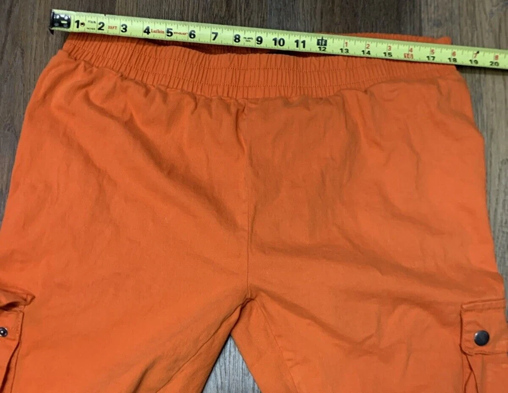 Inseam: 28 in Type: Pants Department: Women Country/Region of Manufacture: China Fit: Slim Occasion: Casual, Party/Cocktail, Travel Fabric Type: Canvas Brand: Roma Studio Premium Collection Features: Comfort, Easy Care, Elastic Waist Leg Style: Tapered Size: 3XL Garment Care: Machine Washable Material: Cotton, Ramie, Spandex Size Type: Plus Color: Orange Waist Size: 36 in Rise: Mid (8.5-10.5 in) Style: Cargo Theme: Hip Hop Pattern: Solid Season: Fall, Spring, Summer, Winter Closure: Pull On