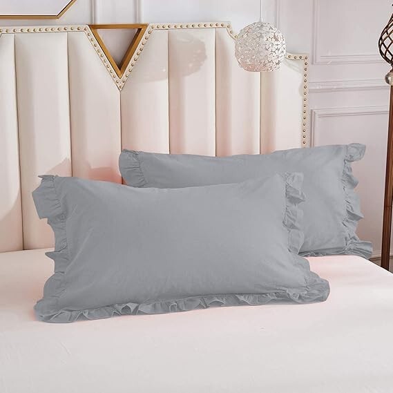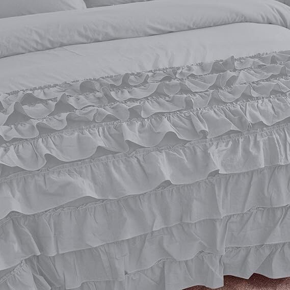 Romantic Bedding Set 100% Cotton, Princess Ruffles Duvet Cover Bedroom bed skirt Create a romantic and luxurious bedroom with this handmade 100% cotton bedding set, featuring a duvet cover with princess ruffles and a floral pattern. The set includes a duvet cover, bed skirt, and is suitable for teens, adults, and kids. The boho style with a luxury theme offers a cozy and elegant feel to any bedroom. Easy to care for with machine washable instructions, this duvet cover set is perfect for adding a touch of whimsy to your bedroom decor. Item - 1 PC Duvet Cover With 2 PC Pillow Covers Material - 100% Soft Cotton Fabric Feature - Ruffle Design Color - light gray Closure - Back Side Zip Closure Wash Care - Dry Clean SIZE CHART : Twin - 68" x 90" inches & Pillow Size is 20" x 30" inches Twin XL - 59" x 102" Inches & Pillow Size is 20" x 26" Inches Full - 80" x 90” Inches & Pillow Size is 20" x26” Inches . Queen - 90" x 90” Inches & Pillow Size is 20" x 30” Inches . King - 90" x104” Inches & Pillow Size is 20" x 36” Inches. Cl.king - 98" x104” Inches & Pillow Size is 20" x 36” Inches. We ship order order by FedEx, & Dhl Express, hence rest assured for prompt delivery of your order. NOTE : International buyers are responsible for their countries duties and taxes.