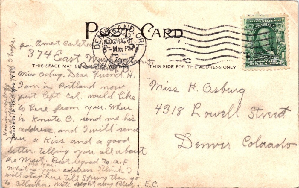 Era:Real Photo (1900-Now)Subject:RomanceMaterial:PaperUnit of Sale:Single UnitType:Real Photo (RPPC)Country/Region of Manufacture:United StatesModified Item:NoFeatures:Real Photo PostcardOriginal/Licensed Reprint:OriginalNumber of Items in Set:1Region:OregonTheme:Cities & Towns, Community Life, Occupational, People, Photographs, Social History, Real Photo, RomanceContinent:North AmericaCity:PortlandPostage Condition:PostedVintage:YesCountry:United States