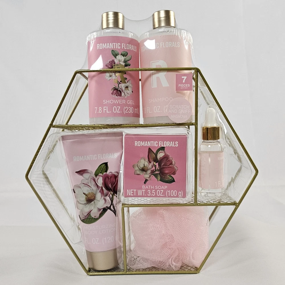 Romantic Florals 7 Piece Bath Set New Factory Sealed. Please Check All Pictures Closely For A More Detailed Visual Description. Ships Out Free Within One Business Day.