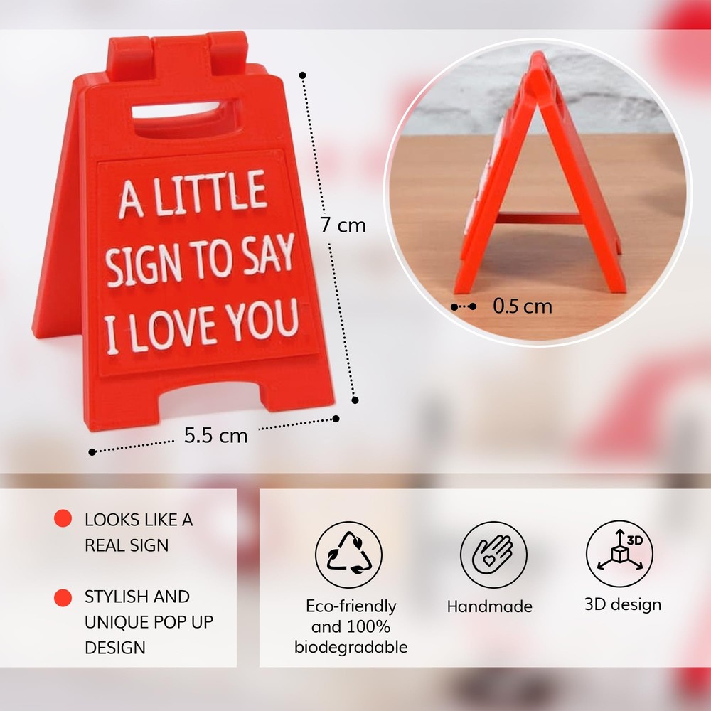 π Show Off Your Romantic Side: treat your other half to a mini sign with the loveliest quote reading "A Little Sign To Say I Love You". The sweetest way to go the extra mile and show your favorite person how you feel about them. π Stunning Valentines Day Gifts To Celebrate Your Love: is V-Day around the corner, and you can't find cute couple gifts to surprise your significant other? Our mini sign makes an ideal Valentines Day gift to spoil them and win over their heart. π Make A Grand Gesture With Iconic Couple Gifts: available in a realistic pop-up design, our gifts for your girlfriend and boyfriend will grab all the looks, making a humorous and heartfelt way to share your love. π Heart-Warming Gifts For Boyfriend & Girlfriend: are you tired of surprising your other half with generic girlfriend and boyfriend gifts everyone has? Equal parts fun and romantic, our mini sign makes a fantastic gift for men and women. π One Romantic Mini Sign For Every Festive Occasion: these fancy presents for boyfriend and girlfriend serve as unique birthday presents for boyfriend, wife Christmas gifts, fiance gifts for her, or wedding anniversary couples gifts for him and her.