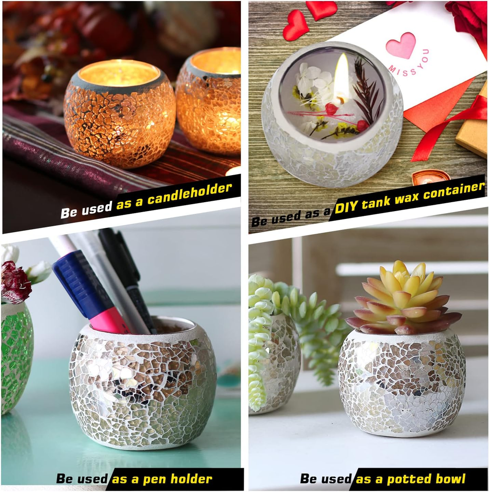 These candle holders are absolutely stunning! The delicate mosaic design and cracked glass give them a romantic, vintage charm. Perfect for weddings, dinners, or adding cozy ambiance to any space. The nude gold color is elegant and versatile—great for Valentine’s, Christmas, or everyday decor. Handmade with care, they’re a beautiful addition to any table setting. Love how they catch the candlelight! Highly recommend for anyone looking to add a touch of warmth and elegance to their home.