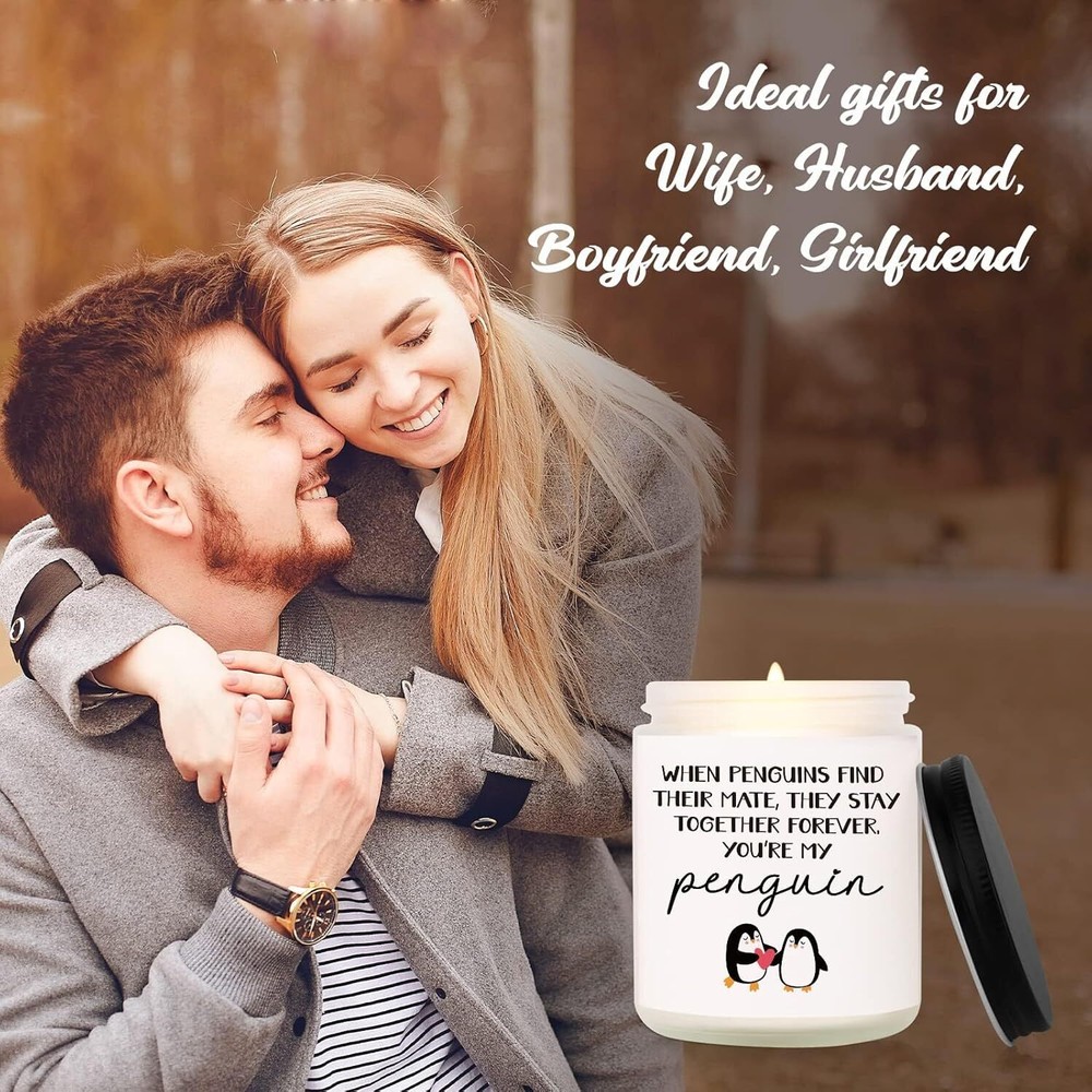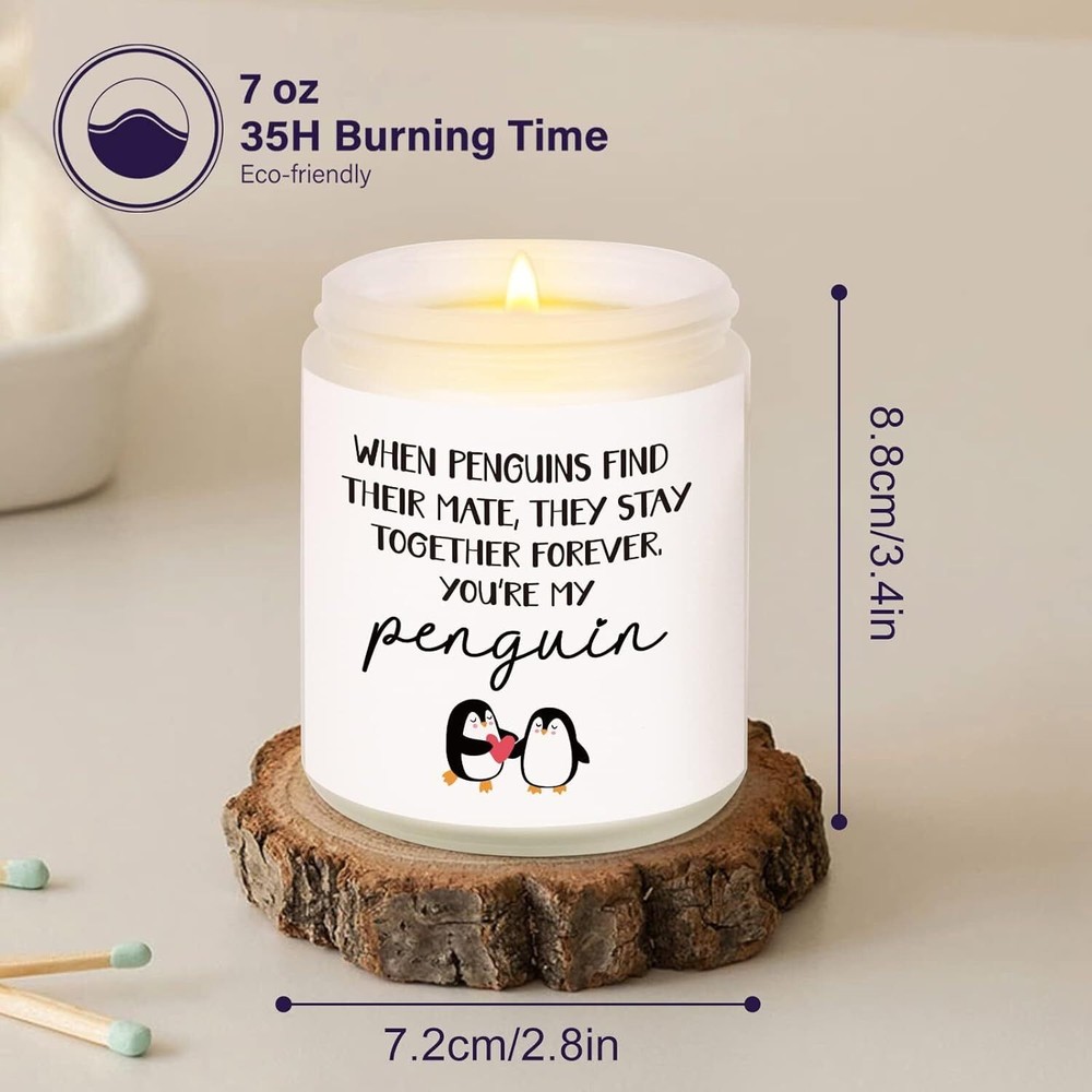 Free eBay listing template designed by dewiso.com Niyewsor Valentines Day Gifts for Him Her, Anniversary Candle Gifts for Men Women, Birthday Gifts for Boyfriend, Girlfriend, I Love You Gifts for Husband, Wife, Couple, Handmade, 7oz FREE AND FAST SHIPPING! About this item 【ROMANTIC VALENTINE'S DAY GIFTS】- Every valentines have a traditional or modern theme for gifting, if you're looking for an actual gift to express your love, this unique and cute penguin candle comes with a tender message of love and emotional quote, making it a great way to give your sweetheart something that’s luxurious, practical, and romantic all at the same time 【BIRTHDAY GIFTS FOR HIM HER】- Show your partner the extent of your love. This " you're my penguin "candle is a great birthday gift for women or men you love, when they see, their eyes will be full of cheers! Available as birthday gifts for boyfriend, husband birthday gifts, wife birthday gift ideas, girlfriend birthday gifts and so on 【I LOVE YOU GIFTS FOR MANY OCCASION】- Gift to make your mate feel your love; Perfect for Anniversary gifts, Valentines day gifts, Father's day gifts, Birthday gifts, Easter gifts, Mother's day gifts, Fathers day gifts, Thanksgiving gifts, Christmas gifts, Stocking Stuffer, Long distance relationship gifts, I Miss You gifts, White Elephant gifts, or just because gifts 【NATURAL SOY WAX & LONG BURNING TIME】- Measures 3.4 inch tall 2.8 inches width. Our 7 oz soy candles made with soy wax, cotton wick and natural essential oil, which is burning more long time, sufficiently. Wax can easily be cleaned out of the jar with hot soapy water and the jar can be reused or recycled 【PLEASANT FLORAL FRAGRANCE】- With a soothing scent of lavender, infused with the perfect blend of essential oils that promote relaxation, calmness, and peace of mind. The scent of lavender can improve sleep, help relieve headache pain, lower stress levels, and combat tension. Great for sleeping, reading, working, yoga, spa and more › Product We offer a 30-Day Return Policy on items which you are not completely satisfied with. You have the option for a full-refund or an exchange of the item. No returns are available on items shipped outside of the US . Shipping We offer Free Shipping to the US and ship within 2 business days of payment, usually sooner. We use UPS express shipping. That's why your products are usually delivered within 3 days . Contact We try our very best to make sure every customer is completely satisfied. If there's a problem , message us! We're happy to help. 24/7 live chat available.