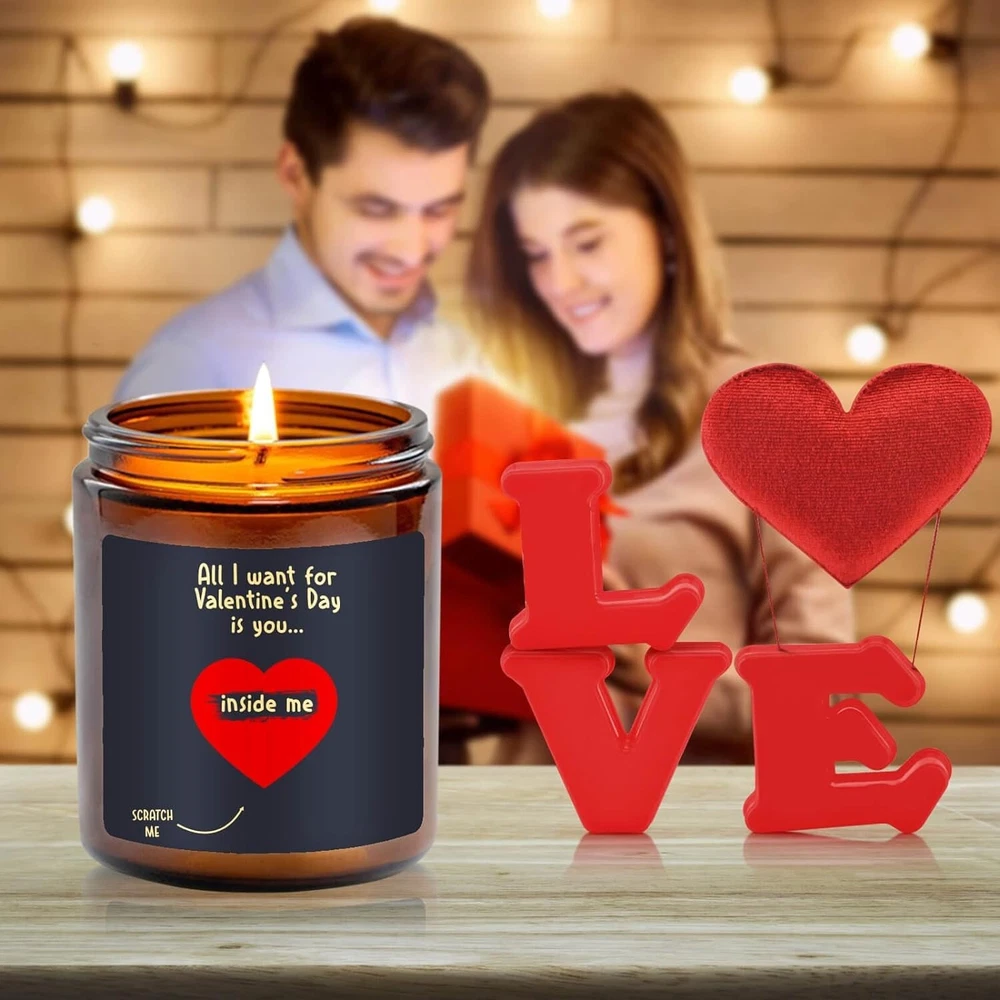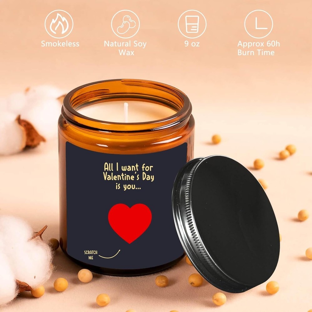 💖Sweet Valentines Day Gifts For Boyfriend: Our 14oz teal jar candle features a playful message that adds a touch of sweetness to your Valentine's Day gift for him. The jar text reads "SCRATCHME All I want for Valentine's Day is you... inside me," creating a fun and unforgettable experience. 💖Hidden Confessions: The jar comes with a special scratching card where your heartfelt message is cleverly hidden. Simply scratch the surface to reveal your innermost feelings, adding an element of surprise and excitement to your gift. 💖Enchanting Fragrance: The English Pear & Freesia scent fills the air with a delightful blend of juicy pears and delicate freesias, creating a romantic atmosphere for your special moments together. 💖The Perfect Valentines Day Gifts For Him: Our candle is the perfect way to express your love and appreciation on Valentine's Day, or any special occasion. It makes a great gift for boys, men, husbands, boyfriends, or dads – anyone who deserves a little extra love. 💖Romantic Valentines Day Gifts For Men: This candle not only provides a charming and romantic ambiance but also offers a personal touch with the hidden confessions. It's a perfect anniversary gift for him that allows you to express your love in a creative and thoughtful way, making it a truly unforgettable gift.
