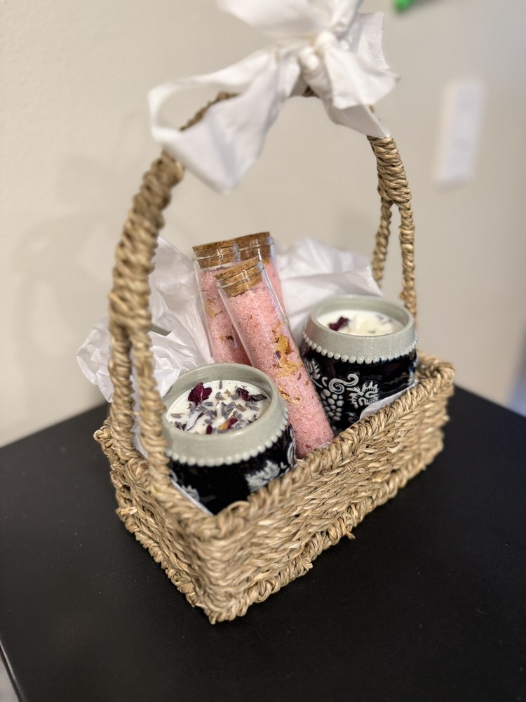 This scented candle set is a romantic Valentine's Day gift for her, featuring a soothing Crème brûlée scent. Handmade in the United States from soy wax, each medium-sized white candle is round in shape with a single wick. The set includes two candles and three bath soaks perfect for creating a romantic atmosphere in the bathroom or bedroom. Additionally, these decorative candles come in a pack and are ideal for pampering bath soaks, making them a thoughtful and luxurious present for a loved one on Valentine's Day.