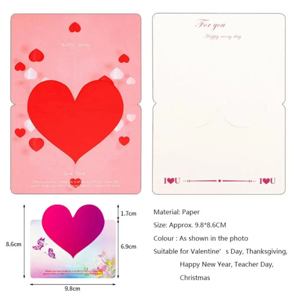 Valentines Cards Valentines Day Gift Love Postcard Wedding Invitation Greeting Cards Anniversary for Valentines Day Gift Card Description: - Material: Paper - Size: Approx. 9.8*8.6CM - Colour : As shown in the photo Suitable for Valentine’s Day, Thanksgiving,Happy New Year, Teacher Day, Christmas Specifications: - Where you love somebody a whole lot and you know that person loves you that's the most beautiful place in the world. - Greeting cards with message on the inside to express your feeling with great impression. - LARGE size cards also have plenty of room for you to wirte your personalization message. - There is nothing better than handwritten wishes! Happy cards will bring you joy and good memories. -Our superior quality occasion cards is your good choice ! Package Included: 1* Creative Love Greeting Card