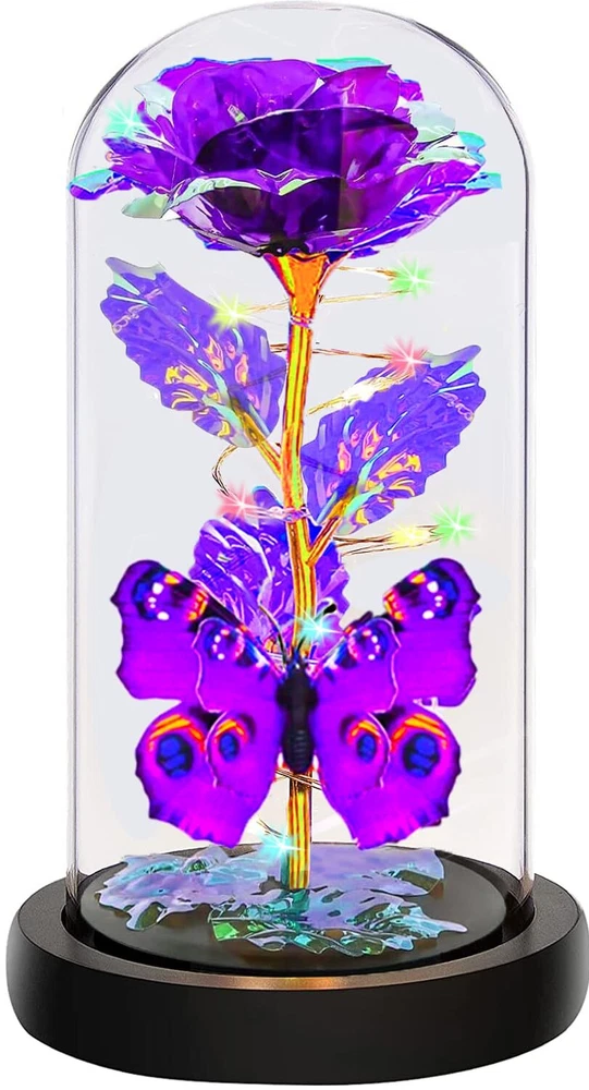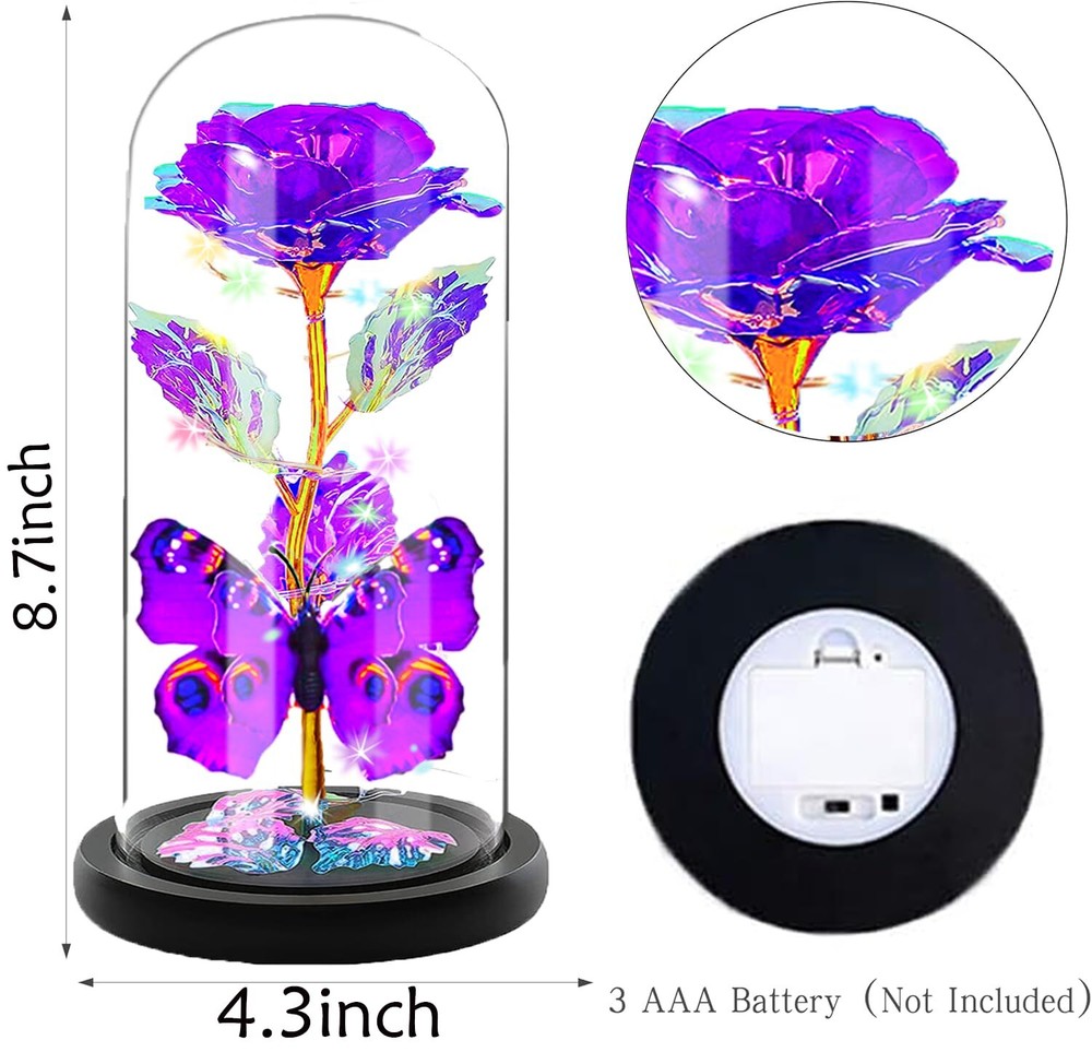 Perfect Valentines Day Gifts For Women: Gifts for women who have everything, the flower is beautiful with stunning color and sparkle, the colorful rose flower in glass dome is perfect and impeccable,will never wither and die, the packaging is spot on- it came in a beautiful sturdy black decorative box, light up rose gifts for her, Valentines flower light gifts for women Beautiful Gifts for Any Woman: Mom Christmas gifts for her, birthday gifts for women, Christmas gifts for grandma, romantic sweet gifts for her women mom gifts colorful rose means that the roses are perfectly and eternally stored in a glass dome, very suitable as Christmas gifts, Mother's Day Gifts, Valentines Day Gifts, or birthday gifts for your mom, wife, girlfriend, grandma, or mother-in-law Valentines for Her: Christmas presents for mom, Mothers day gifts for women, Xmas gifts for women,Christmas gifts for her, light up rose gifts, the details are wonderful and will surely brighten your day, it’s a great gift for any occasion, Xmas presents, best gifts for girlfriend, friendship gifts for women, valentines day gifts for wife, Mothers day, birthday gifts for mom grandma, Valentines rose gifts for gf LED Light Up Rose Gifts: Powered by 3 AAA batteries (not included), led lights are twined around rose, once you turn it on you see just how bright it lights up and how beautiful it really is, nice and bright, looks great in the day and night, it adds a romantic and sweet atmosphere and as a indoors decoration on Christmas and other holidays Beautiful Handmade Flower Decoration: Glass Rose is a romantic gifts decorations for Christmas Valentine's Day, Wedding, Engagement, Mothers Day, Anniversary Day, Birthday, housewarmings, which will give her a surprise, make her happy and create much romantics. Nothing gets the romance flowing like a glass eternal rose, appealing to all types of women at any age