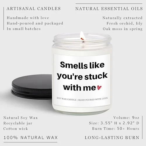 Return Policy Fast Delivery Trusted seller Valentines Day Gifts Valentine's Day Gift Candle Romantic Valentines Day Gifts for Him/Her Funny Gifts for Boyfriend/Girlfriend Valentines Gifts for Her Couple Gifts Wife Husband Valentines Day Gifts Product Description Valentines Day Gifts for Him | =Valentines Day Gifts for Her | Valentines Gifts for Him | Mens Valentines Gifts | Funny Gifts for Boyfriend | Valentines Gifts for Her | Boyfriend Gifts | Anniversary Gifts for Women | Boyfriend Valentines Day Gifts | Unique Couple Gifts | Gifts for Girlfriend | Husband Valentines Day Gifts | Valentine Gifts for Women | Valentines Day Gifts for Boyfriend | Valentines Day Gifts for Men | Valentines Day Gifts for Husband | Valentines Day Gifts for Girlfriend | Valentines Day Gifts for Wife | Romantic Gifts for Her Whether it's for your boyfriend, girlfriend, husband, or wife, this candle delivers a sweet message with a dash of humor. The charming label, “Smells like you’re stuck with me ❤️,” makes it a delightful Valentine’s Day gift, anniversary surprise, or just a cute way to say, “I love you.” Made from 100% soy wax and featuring a pure cotton wick, our candle ensures a long-lasting, clean burn without harmful toxins. Enjoy up to 50 hours of delightful fragrance, perfect for cozy nights in with your special someone. No need for extra wrapping! This candle comes in a sleek, minimalist box, making it an ideal gift for couples, newlyweds, or long-term partners. Thoughtful yet effortlessly chic, it’s the perfect way to show you care. Infused with the calming scents of orchid, white lily, and spring moss, this candle offers a soothing and romantic atmosp, ideal for date nights, self-care evenings, or simply unwinding together. Beyond Valentine’s Day, this candle makes a great birthday gift, anniversary surprise, or even a “just because” treat. A timeless gift that suits any celebration, ensuring your partner feels appreciated and loved. Shipping Returns Payment Shipping Shipping is FREE to all addresses other than APO/PO boxes in the lower 48 states. All our stock ships from US-based warehouses. Shipped via USPS or UPS (depending on location and package weight) Unless stated otherwise, all orders will ship within 24-72 hours of your payment being processed. Check our feedback to see the great reviews of FAST shipping we offer. Returns Seller does not accept returns Payment We currently accept payment via eBay managed payments only. Once payment is cleared, we will dispatch your shipment within 1-3 business days. Please refer to the "Shipping" tab for more information regarding shipping speed to your destination.
