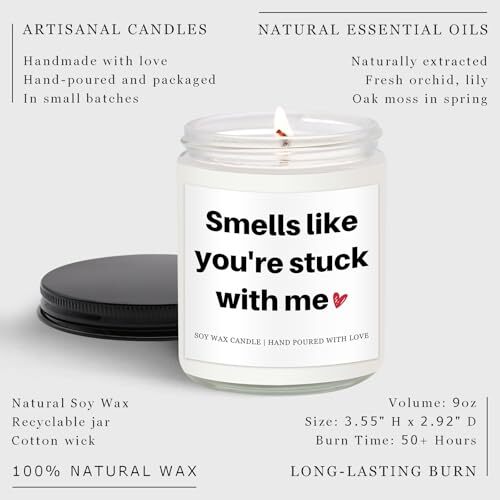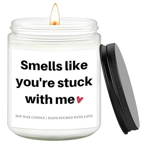 Item Weight: 9 Ounces Product Dimensions: 2.91"W x 3.54"H Item Height: 1 gtin13: Does Not Apply Material: Soy Wax Batteries Required: No UPC: Does Not Apply Country of Origin: China Type: Does Not Apply Scent: Orchid, White Lily & Spring Moss Manufacturer: Does Not Apply Color: White Part Number: Smells like you're stuck with me Number of Items: 1 Item Width: 1 Unit Count: 9.0 Fluid Ounces Item model number: Unique gifts for him Specific Uses For Product: Decoration Model Name: Unique Valentine's Day Gift for Him/Her MPN: Does Not Apply Batteries Included: No Date First Available: December 18, 2024 Item Length: 1 EAN: Does Not Apply Are Batteries Included: No Brand: Does Not Apply