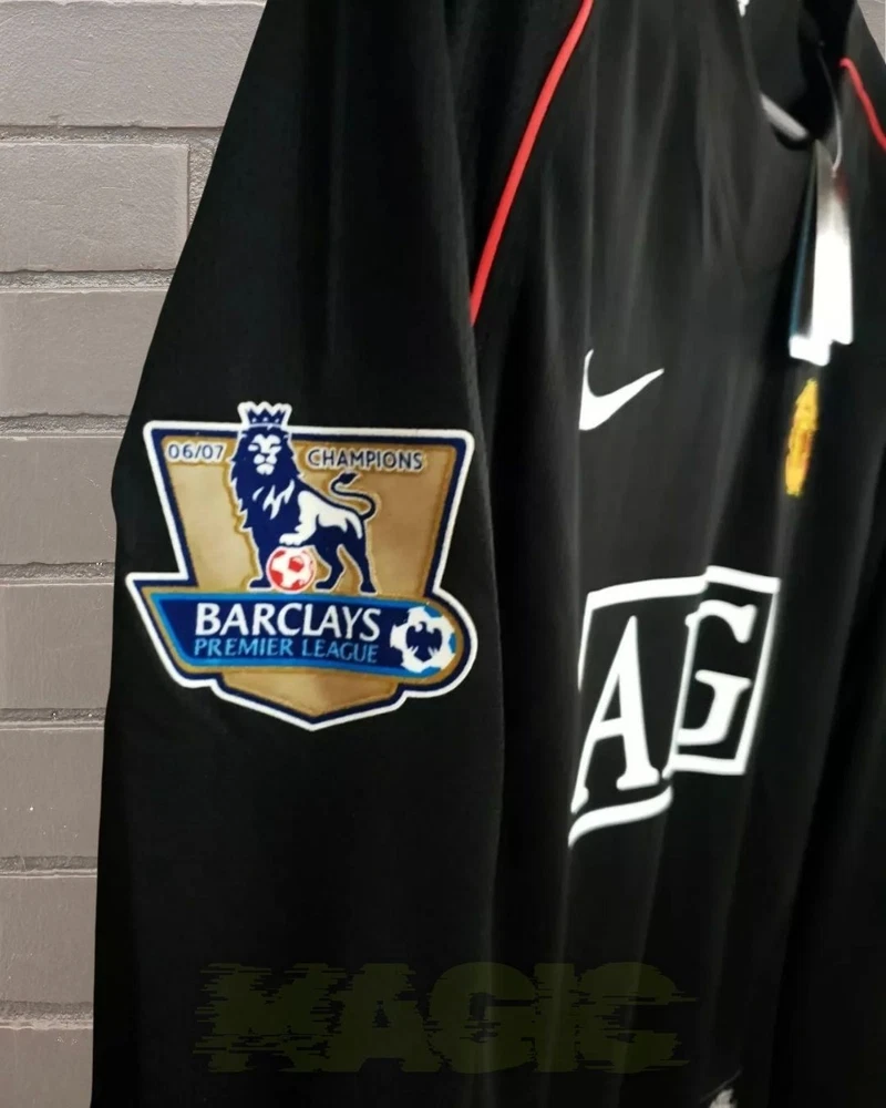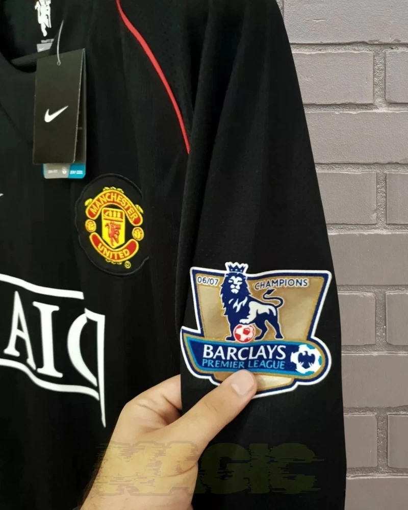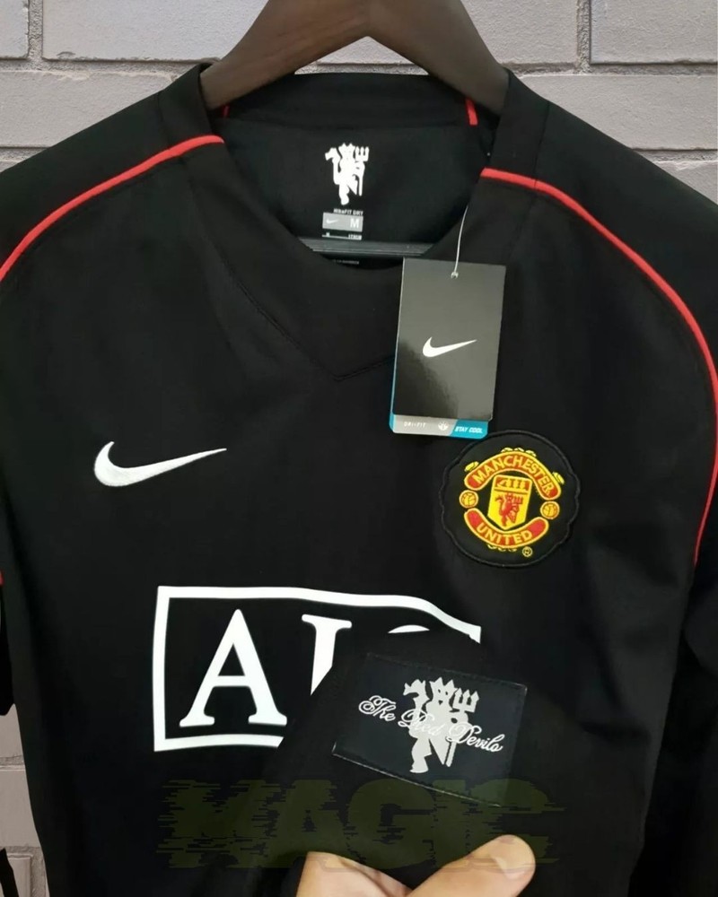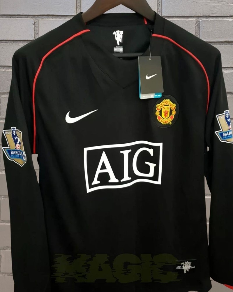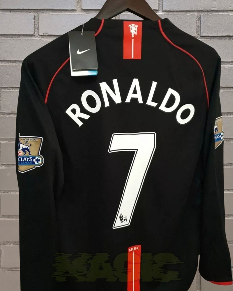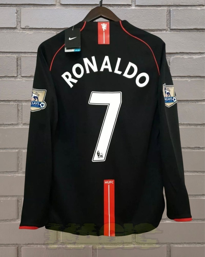 The product is a 2007/08 Manchester United Away Black Long Sleeve Retro Soccer Jersey featuring Cristiano Ronaldo. Made by Nike, this jersey is designed for men and represents the iconic black color scheme of Manchester United. With a capacity of 8 oz, this jersey is a stylish and nostalgic piece that pays tribute to one of the greatest players in soccer history. Made in Thailand, this jersey is a must-have for any fan of Cristiano Ronaldo or Manchester United. Shipping: Free shipping worldwide Processing within 2 business days Get it delivered within 5-10 Business days. Tax free: All taxes are covered, what you see at checkout is the final price you pay. Returns: We got you covered, Simply reach out to us within 30 days of delivery for a smooth solution. Take care of your jersey: Wash: Inside out, cold water (30°C max), and a delicate cycle. Detergent: Mild liquid only; no fabric softener or bleach. Dry: Air dry only on a hanger. Never use a dryer. Iron: Steamer only, or iron inside out on the lowest heat with a towel barrier. Storage: Hang it up to avoid creasing the logos/printing.