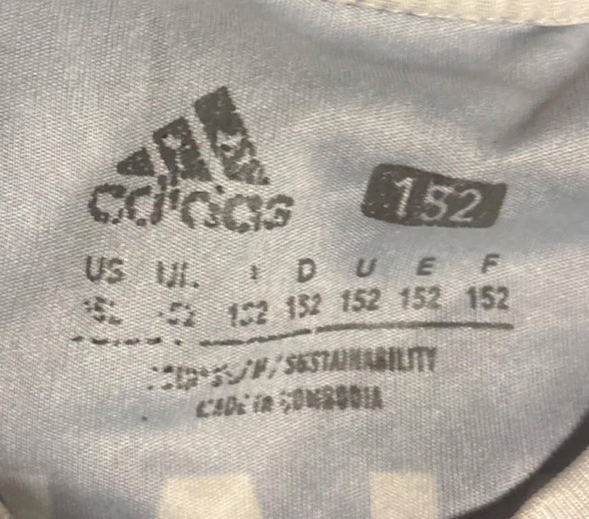 Show your love for Cristiano Ronaldo and Real Madrid with this authentic adidas jersey. Made from high-quality materials, this jersey is perfect for any soccer fan. The purple color and iconic Real Madrid logo make this jersey a must-have for any true fan. Featuring a capacity of 8 oz and a size of Euro 152 (Youth Large), this jersey is perfect for wearing to games or as a part of your fan apparel collection. Made in Jersey, this jersey is a great addition to any sports memorabilia collection. Get yours today and show your support for the greatest soccer player of all time!