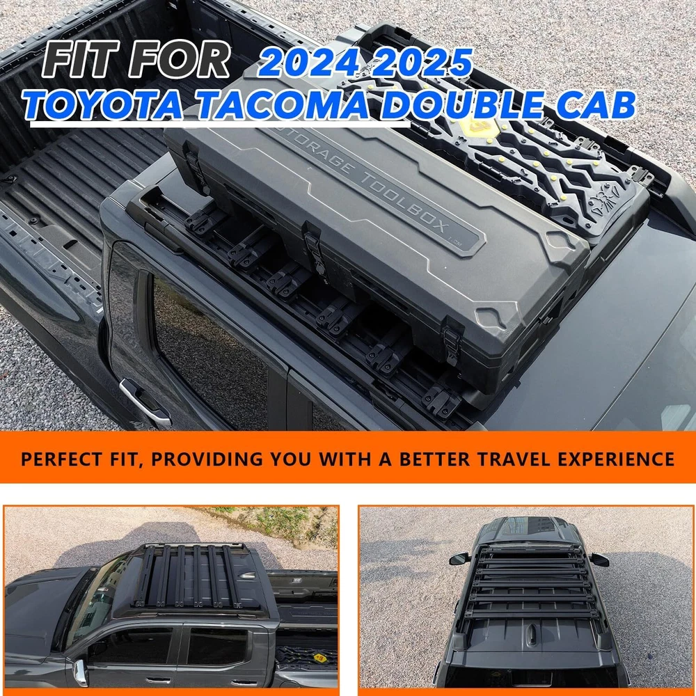 Specification: Durable and Long-Lasting: The black powder coating ensures its longevity and can endure harsh weather conditions. It can carry up to 220 lbs (100 kg) of load capacity, making it a great solution for transporting various oversized items. Versatile and Convenient: The set of two OE-style roof racks is an aftermarket product that can accommodate kayaks, canoes, snowboards, bikes, luggage, fishing poles, and more. Customize the perfect fit for your car's roof items with adjustable cross bars that can be easily moved and freely positioned to your desired distance. Fits: For Tacoma Double Cab 2024 2025 2026 .(With 4 Full Size Door) Pls Note: This is aftermarket, Not OEM one. Package Included: As pics show All necessary hardware is included Roof Rack & Platform with Movable Cross Bars for 2024 + Toyota Tacoma Double Cab Specification : Durable and Long-Lasting: The black powder coating ensures its longevity and can endure harsh weather conditions. It can carry up to 220 lbs (100 kg) of load capacity, making it a great solution for transporting various oversized items. Versatile and Convenient: The set of two OE-style roof racks is an aftermarket product that can accommodate kayaks, canoes, snowboards, bikes, luggage, fishing poles, and more. It provides ample space for all your adventure gear. Easy Installation: The package comes with all the necessary installation hardware making it a breeze to install. If you have any questions, our team is always available to assist you. Premium Quality and Affordability: Our product is a reliable solution for all your transportation needs. It's aftermarket and not OEM, which means you can get the same quality at an affordable price. Transport your gear in style with our roof rack! Customize the perfect fit for your car's roof items with adjustable cross bars that can be easily moved and freely positioned to your desired distance. Experience a peaceful and quiet ride with our roof platform featuring a windshield fairing at the front that effectively blocks wind noise. Say goodbye to distracting wind sounds and focus on enjoying the journey. Fits : For Tacoma Double Cab 2024 2025 2026 .(With 4 Full Size Door) Pls Note: This is aftermarket, Not OEM one. Package Included: As pics show All necessary hardware is included Payment Delivery details Terms of sales About us Contact us Payment We accept major credit card payments via Paypal. Payment must be received within 7 days of auction closing date. If you do not contact us or respond to our email within 7 days of auction closing date, we do not guarantee the item availability. We reserve the right to cancel any unwanted bids. Delivery details Flat rate shipping charge will be applied to the 48 continental USA States. Extra shipping fee will be charged to ship item(s) to HI, AK, PR, GU, VI, APO, FPO . Item(s) will be shipped via UPS Ground or USPS or Fedex within 3 Business days after payment is received. A Tracking Number will be upload on platform as soon as item(s) is shipped. International buyers please note, we are not responsible for any custom duties, taxes and brokerage fees. For some oversize packages, we may not be able to ship via USPS. Terms of sales All of our items are professionally made and guaranteed to fit. A professional installation is always recommended. Please send a message over eBay if you have any questions. We accept returns within 30 or 60 days after you received the item(s). All returned items must be new and in original package. The buyer will pay return shipping fees. No refund will be made for damaged parts. Shipping and handling fees and insurance fee are not refundable. About us Our warehouses are located in CA and NJ The transportation time is approximately 3-5 working days Contact us Your satisfaction is our top priority. We stand behind all products that we sell. If you have a problem with any of our listings, please allow us to work it out. Our business times are Monday-Friday 9:00- 5:00 Pacific Time. Office closes on weekends and holidays. We are striving to earn a 5- star rating with every purchase. Please take a moment to leave us a positive feedback when you receive your order. If you are not satisfied, please let us know before you leaving feedback. Please always include your purchase eBay item number in the mail whenever you have any questions.