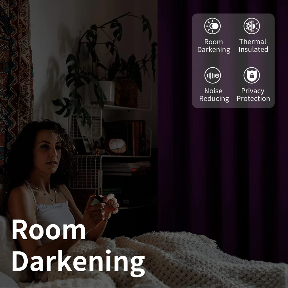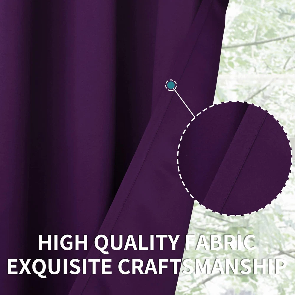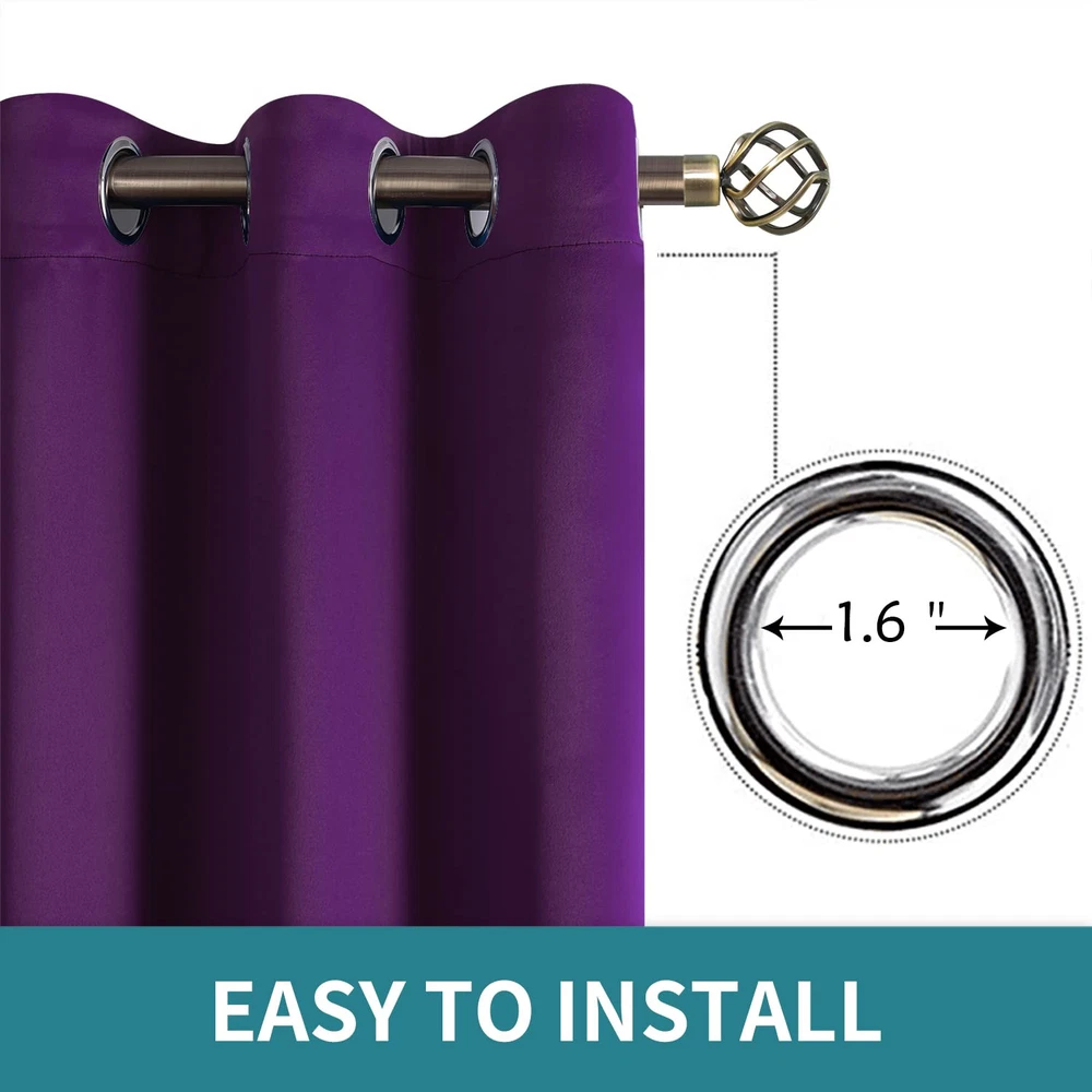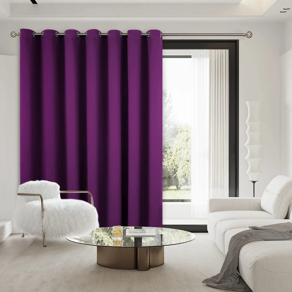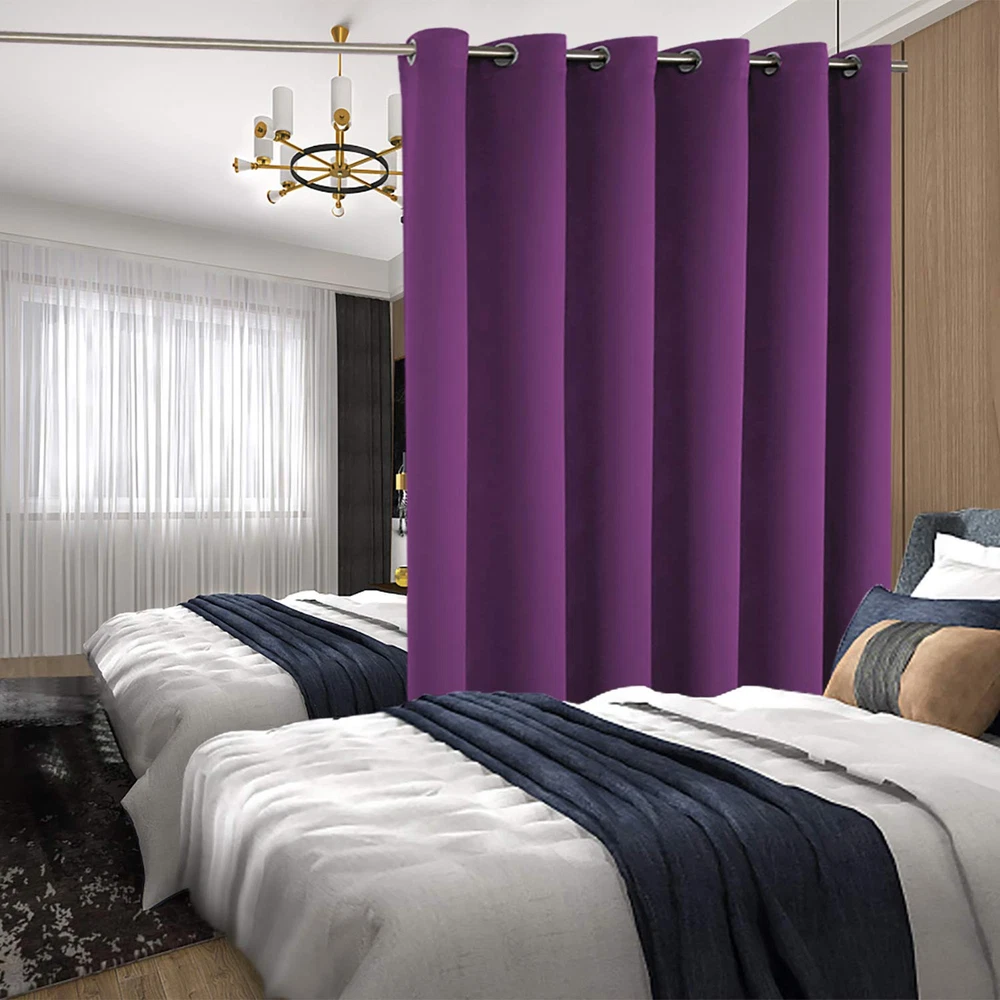 Package Includes: 1 panel of purple blackout curtain; each panel measures 10 Foot(120 Inch) wide by 8 Foot(96 Inch) long. Each curtain panel has 12 silver metal grommets ( inner diameter 1.6 inch ) on top, comparable with most rods. Easy to hang, and slide smoothly. Sliding Door Curtain: These extra wide curtains are wide enough to cover the sliding door as well as other wide windows perfectly. Besides, these sliding door curtains can be used for shared bedroom, apartment, storage, studio, dorms, loft, office, fitting room and etc. Room Divider: Just draw room divider curtains shut when either side needs privacy, these room separating dividers do a great job of blocking the unwanted view of the room and create a private space for you. It also can be a temporary solution for creating new spaces without building walls. Room Darkening and Thermal Insulated: Our blackout curtains can block out sunlight ( Darker colors work better ). These privacy curtains are perfect for night shifts, late sleepers and afternoon naps. Our energy saving curtains insulate against summer heat and winter chill to balance your room temperature, save your energy costs. Tips: Our curtain width is flat width for each panel before hanging, actual coverage width is less. Choose total curtain flat width at least 1.5 - 2 times wider than window and curtain length should to be greater than the window height for perfectly coverage.